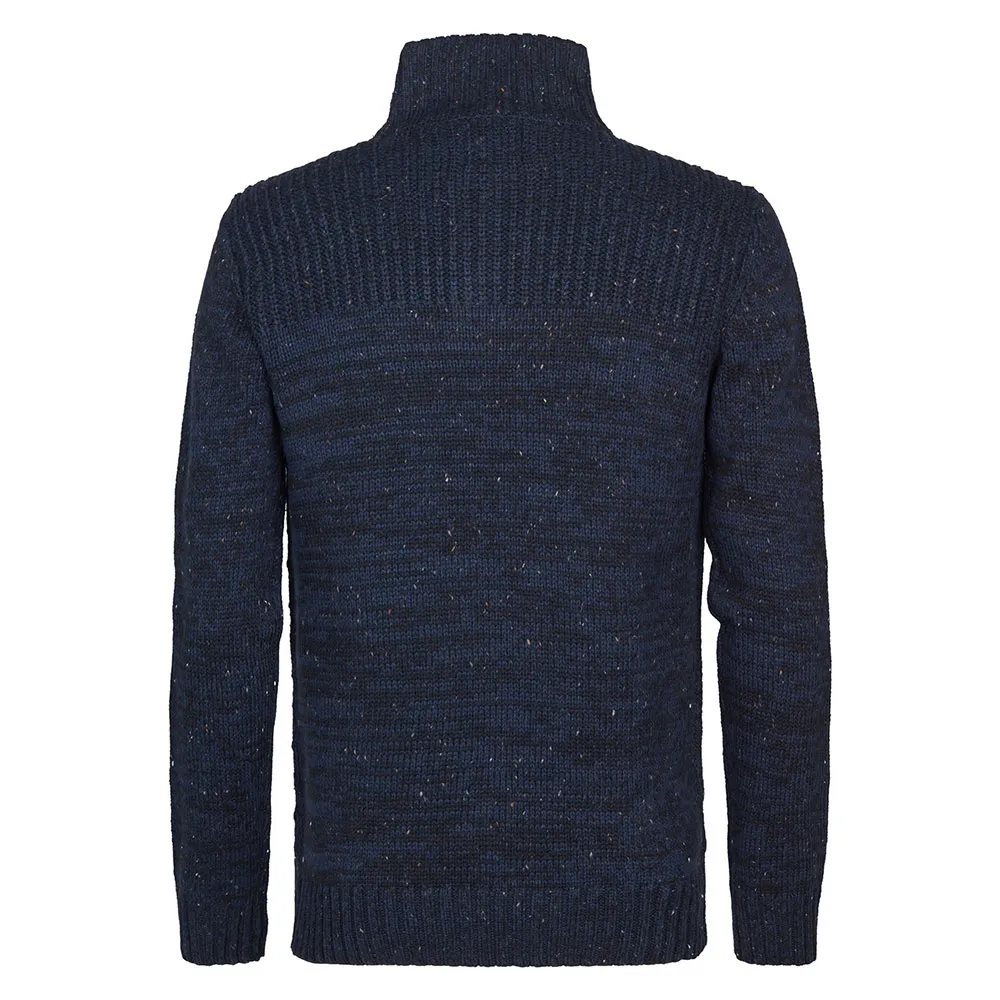 Этот мужской свитер отличается характерным высоким воротником, который украшен стильной и функциональной планкой на пуговицах. Такой дизайн допускает множество вариантов укладки: носите его полностью застегнутым для максимального тепла и изысканного, структурированного образа или оставьте несколько расстегнутых пуговиц для создания более непринужденной атмосферы. Богато текстурированный трикотаж придает изделию визуальную глубину и тактильные ощущения, которые выводят его за рамки обычного пуловера. Внимание к деталям проявляется в ребристых манжетах и подоле, которые не только добавляют классический завершающий штрих, но и обеспечивают надежную посадку, сохраняя тепло и силуэт свитера. Утонченный брендинг, соответствующий духу бензиновой промышленности, дополняет дизайн, подчеркивая качество и аутентичный характер. Искусно подобранный крой обеспечивает комфорт и не ограничивает движений, но при этом выгодно подчеркивает фигуру, что делает его легким выбором для любого типа телосложения.