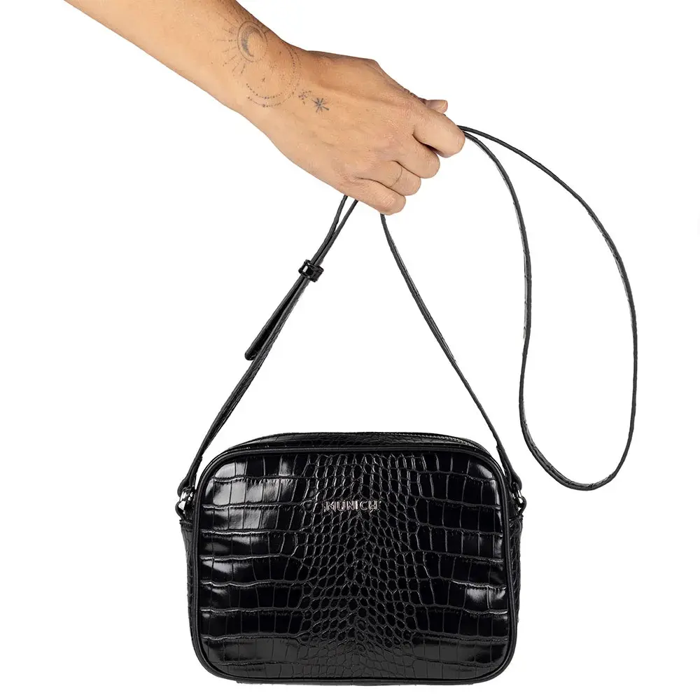Сумка через плечо из синтетической кожи с тиснением под крокодила. Чем меньше, тем лучше.