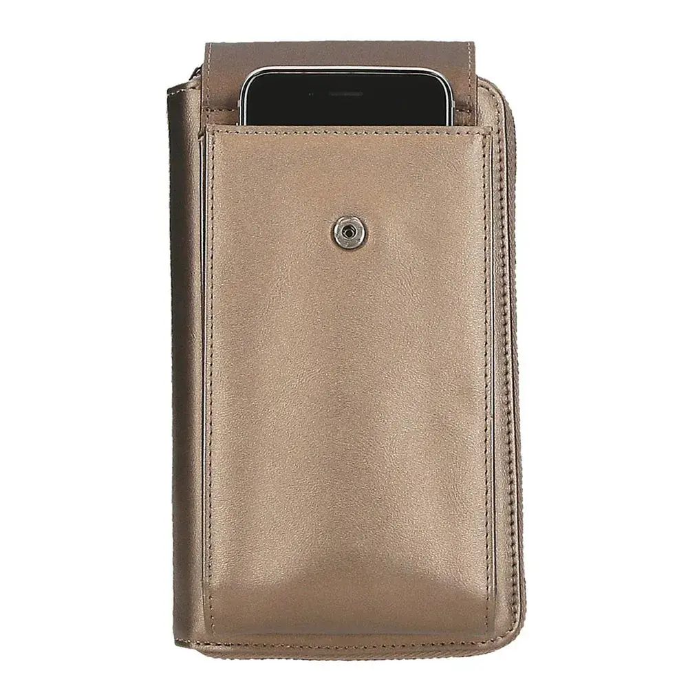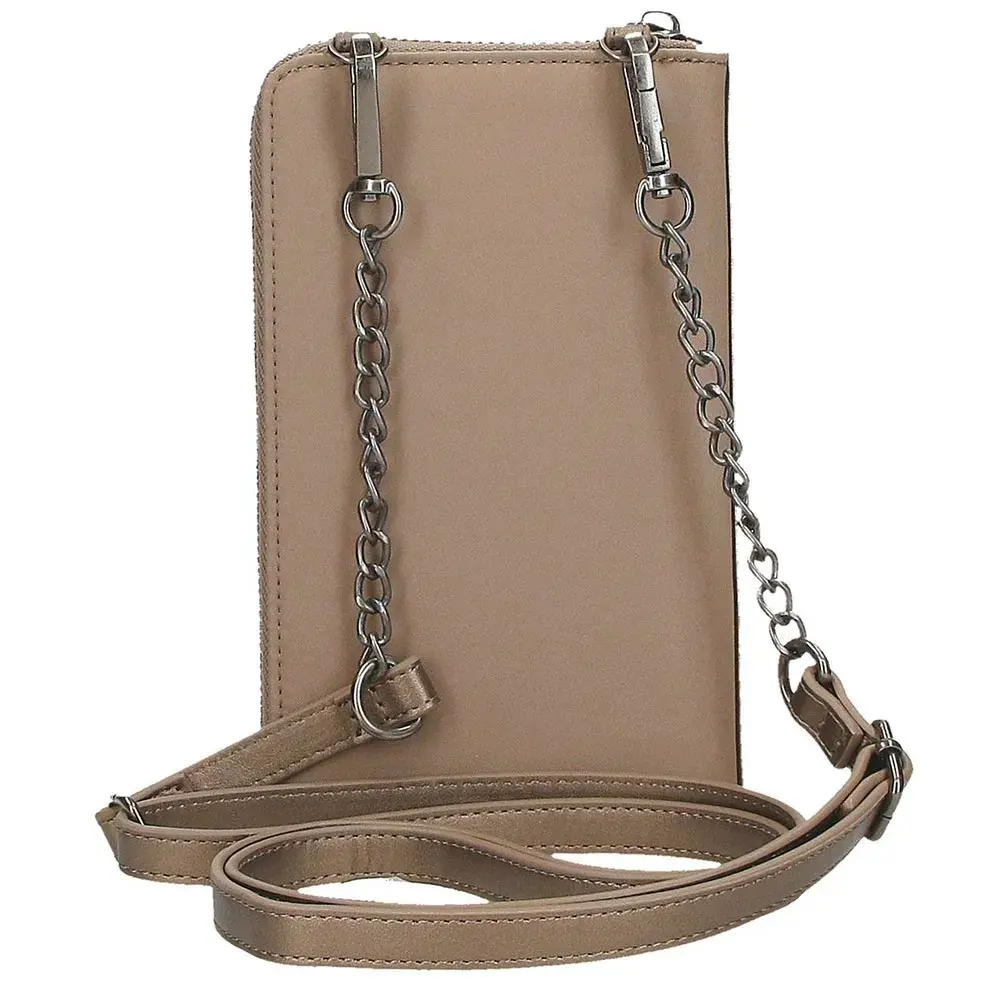 Сумка через плечо с держателем для мобильного телефона размером 11 х 20 х 4 см изготовлена из полиэстера и деталей из синтетической кожи.