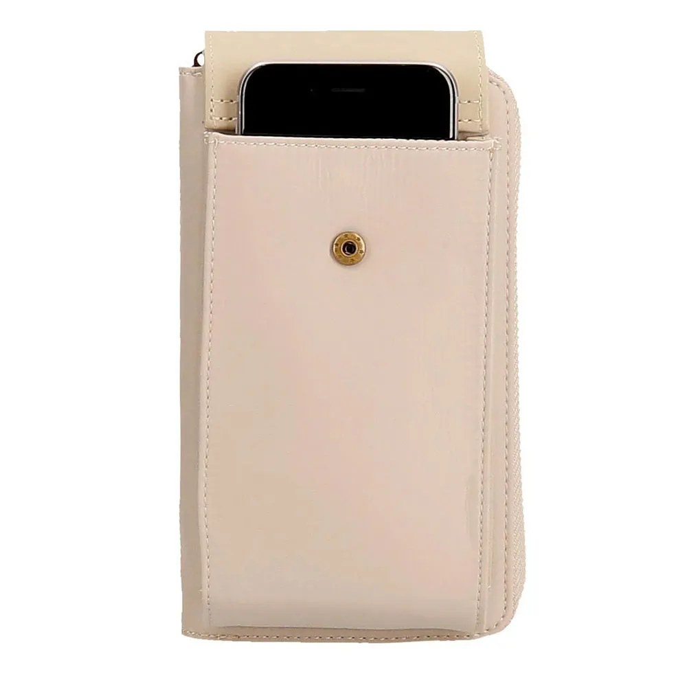 Сумка через плечо с держателем для мобильного телефона размером 11 х 20 х 4 см изготовлена из полиэстера с деталями из синтетической кожи.