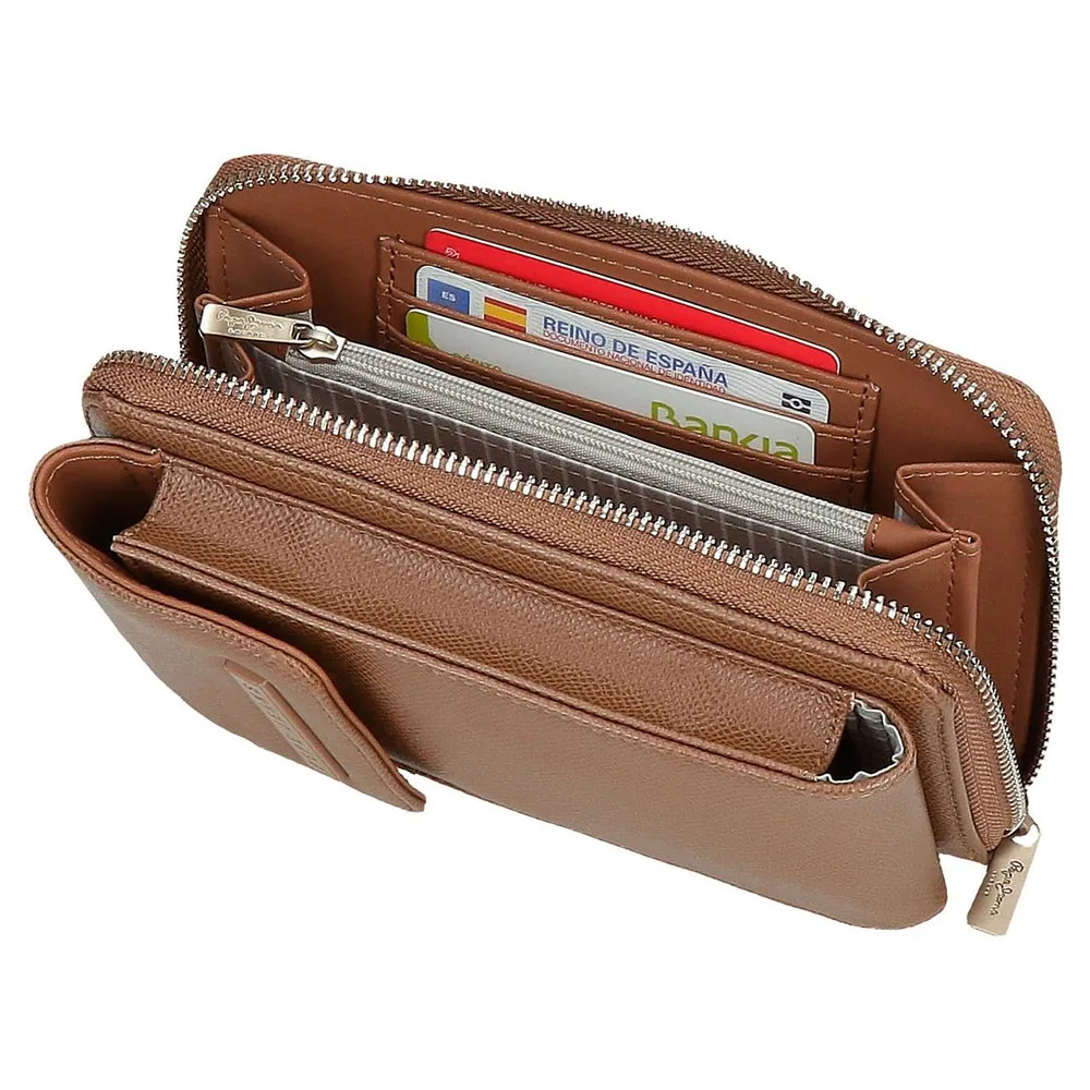Основное отделение с двумя отделениями, портмоне на молнии и тремя слотами для карт.