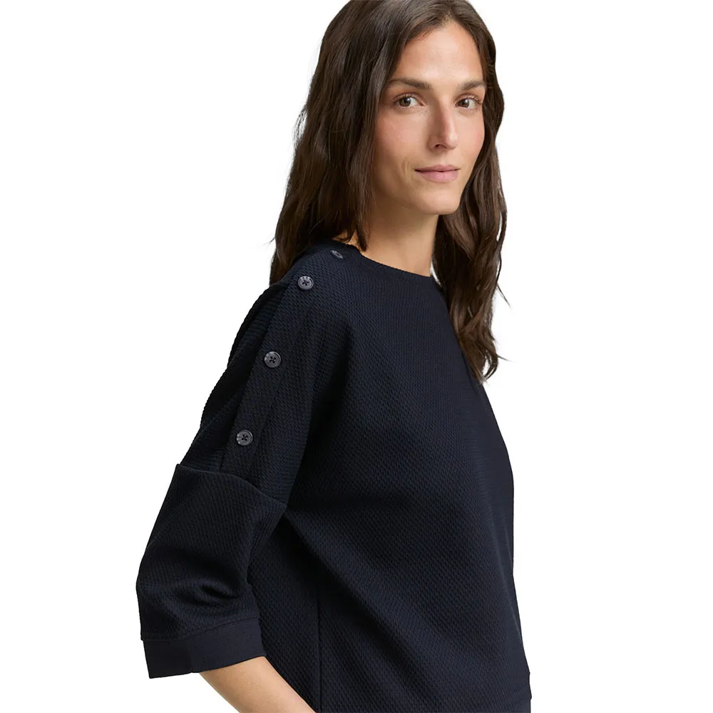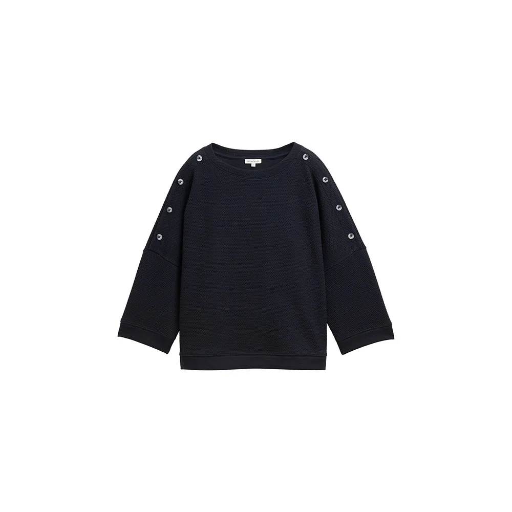 Толстовка с декоративными пуговицами на плечах.