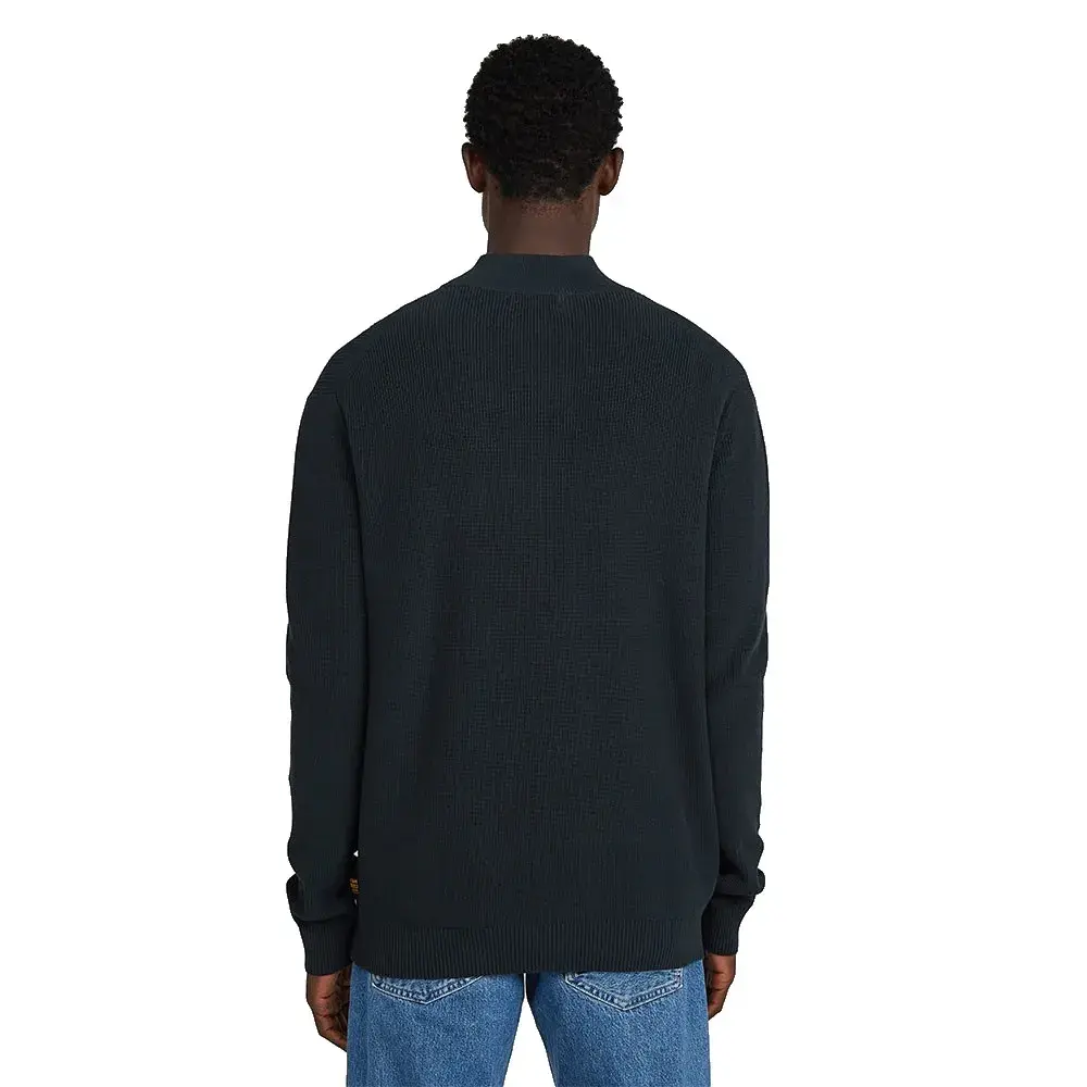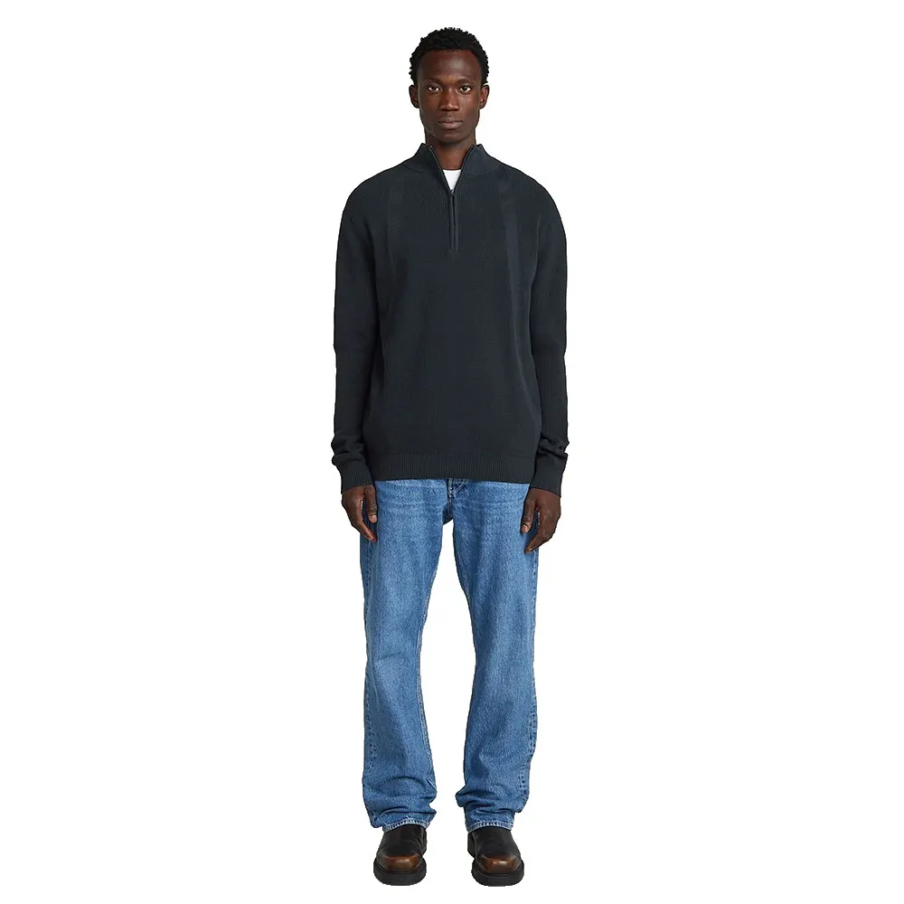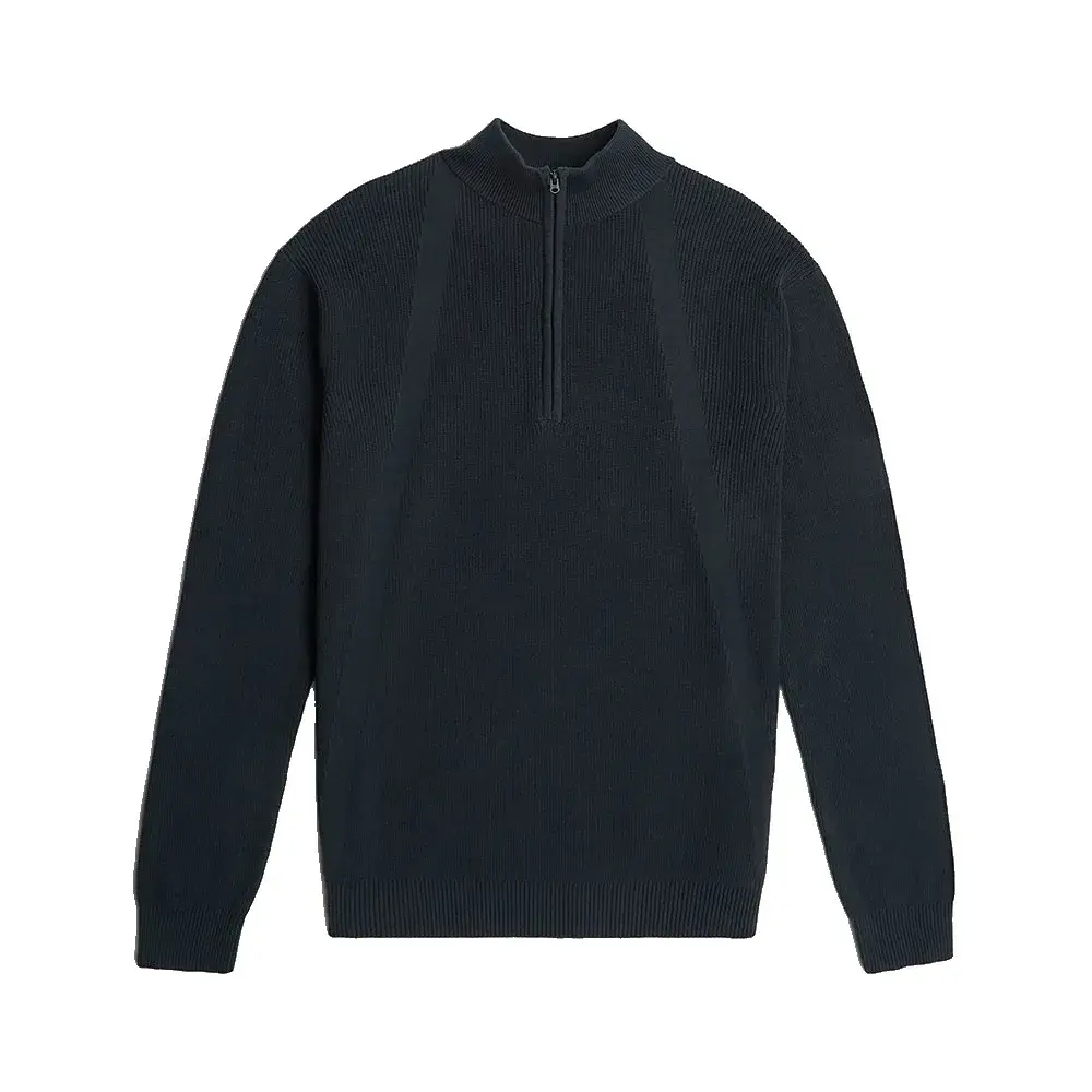 Трикотажное изделие с застежкой наполовину на молнию и воротником-стойкой.