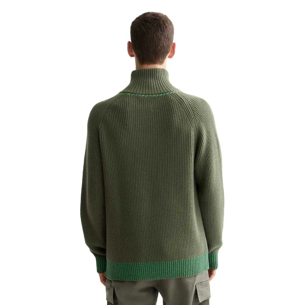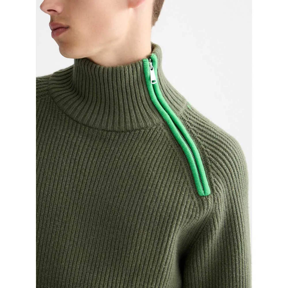Отличительной чертой этого свитера является классический высокий вырез Troyer с высококачественной застежкой-молнией. Это позволяет адаптировать стиль и регулировать температуру; застегивайте его сверху на молнию, чтобы придать ему элегантный, современный вид и максимально согреть в прохладные дни, или носите его частично открытым, чтобы создать непринужденный эффект многослойности поверх накрахмаленной футболки или рубашки с воротником. Эта функциональная деталь превращает свитер из простого пуловера в динамичный и податливый предмет одежды.