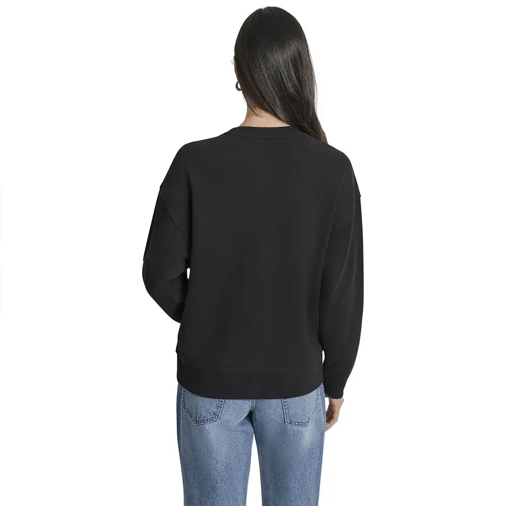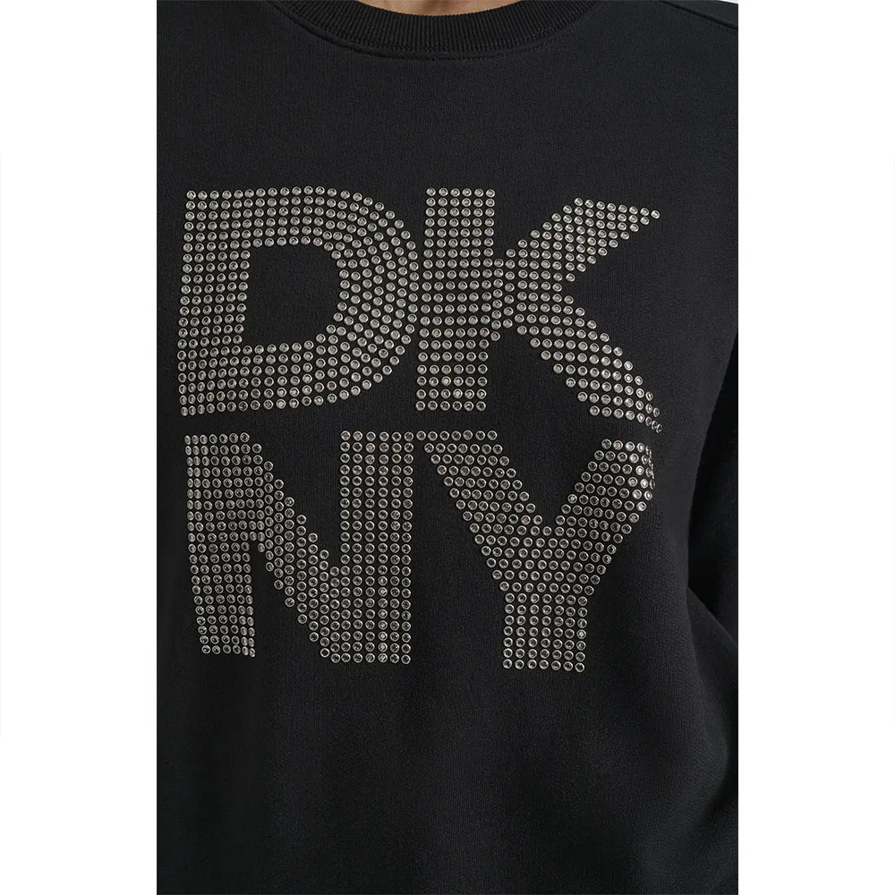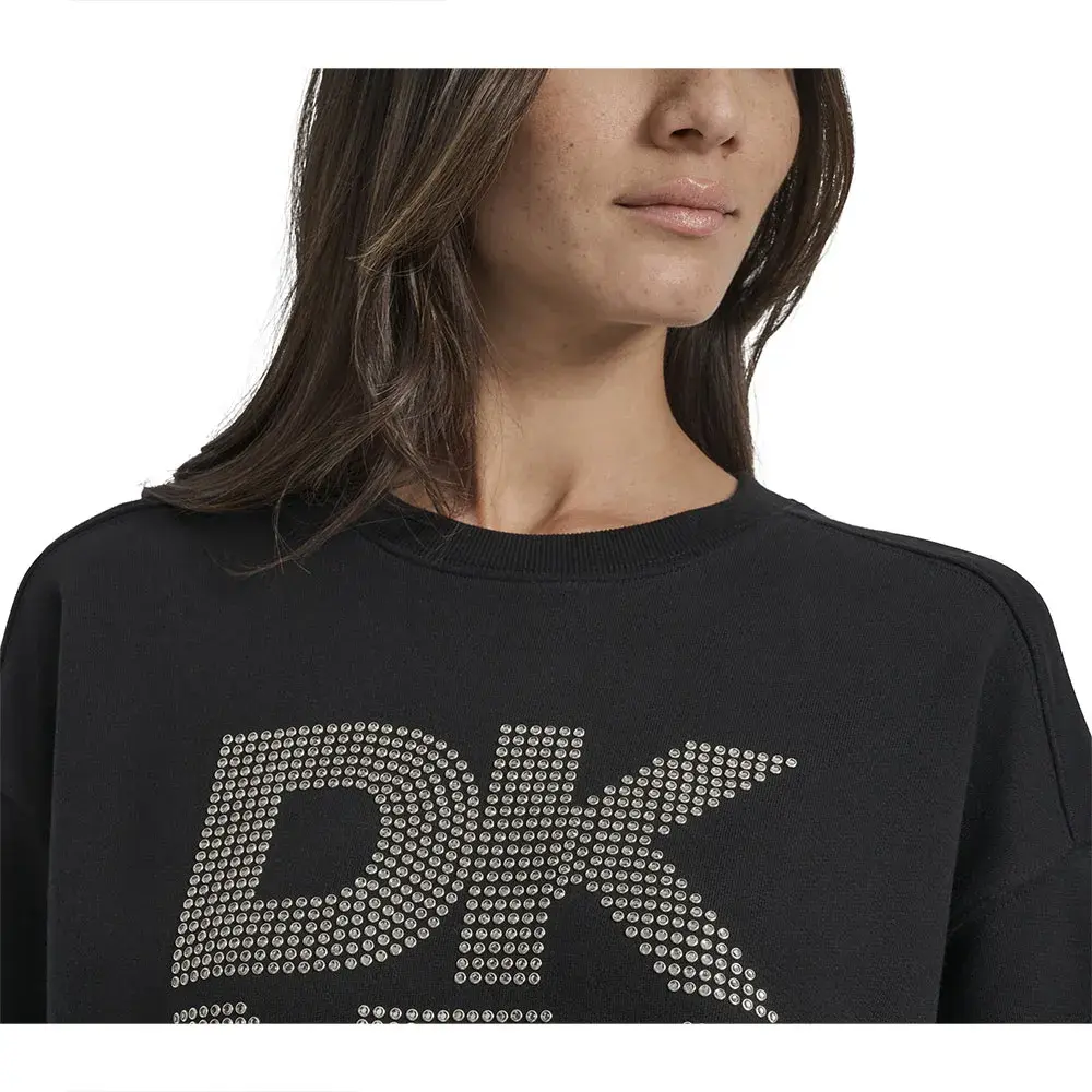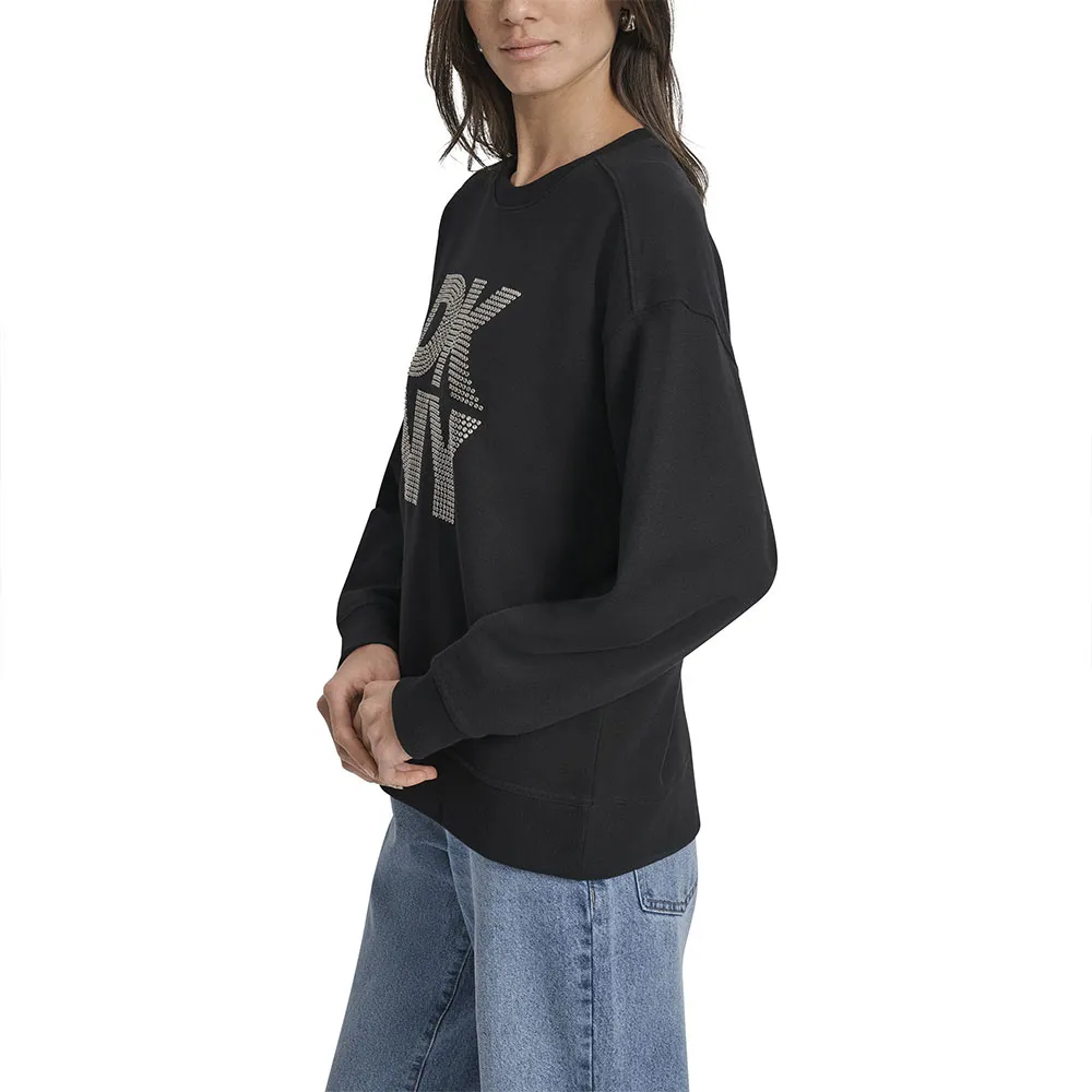 Отличительной чертой этого исключительного изделия является культовый логотип DKNY, выполненный в виде ярких заклепок спереди. Эта привлекательная деталь добавляет нотку современного гламура и острой текстуры, превращая классический дизайн в отличительное заявление моды. Тонкое мерцание заклепок улавливает свет, гарантируя, что вы будете выделяться как образец подлинного дизайнерского качества. Неподвластный времени круглый вырез, также известный как crewneck, повышает его универсальность, позволяя легко надевать поверх рубашек с воротником или сочетать с вашими любимыми ожерельями.
