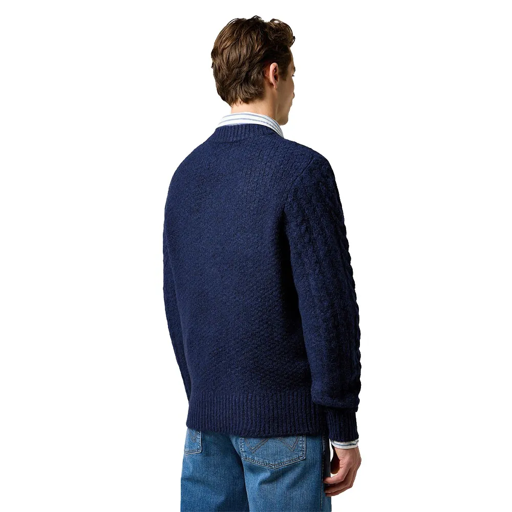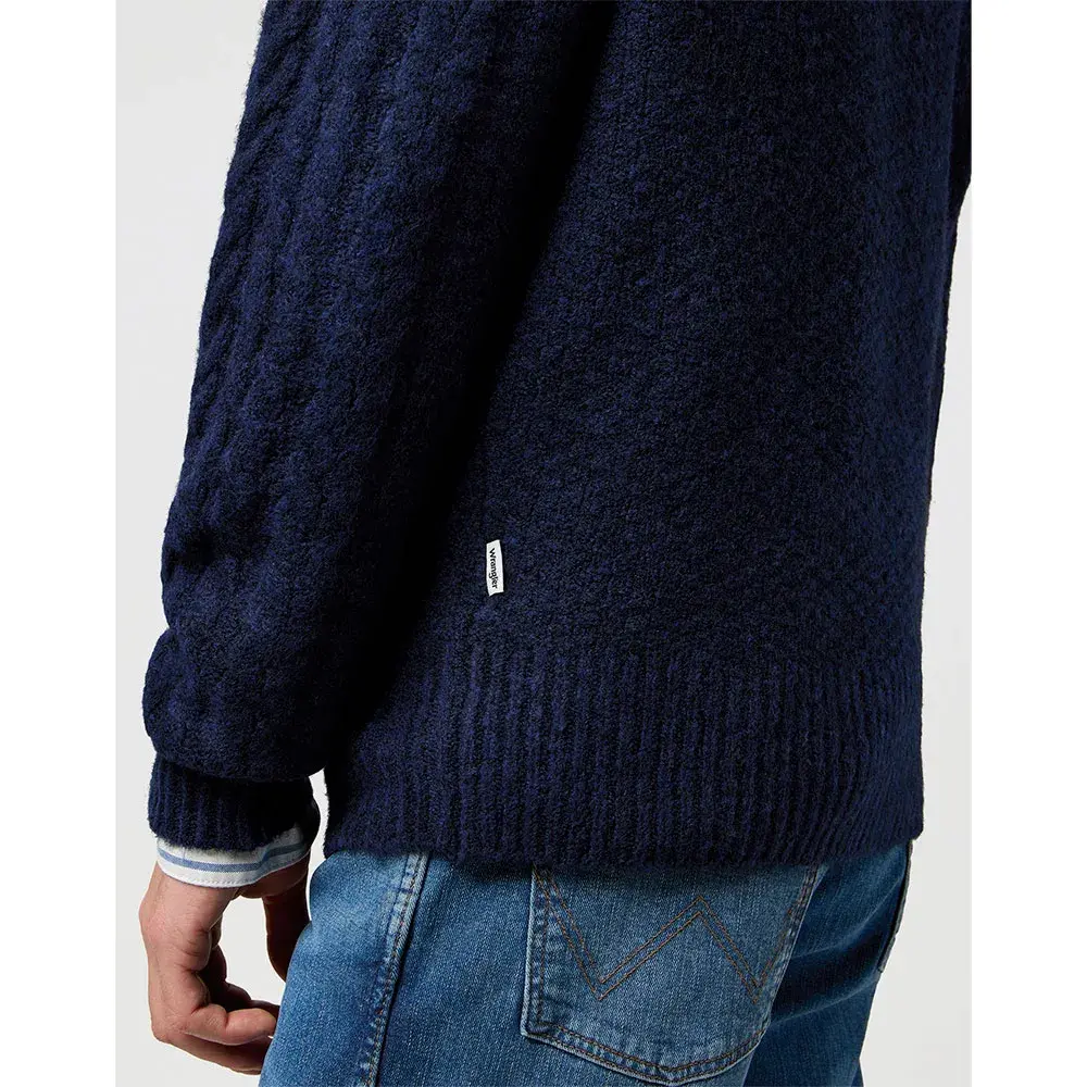 Этот вязаный свитер с длинными рукавами, тканым лейблом Wrangler и темно-синим оттенком хорошо сочетается с чем угодно в вашем гардеробе.