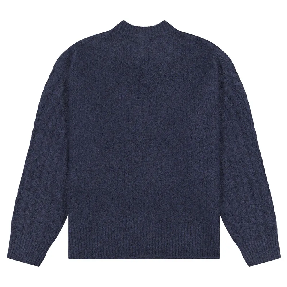 Темно-синий джемпер с круглым вырезом горловины и тканой надписью Wrangler над низом, подчеркивающей наследие нашего культового бренда, украшен объемным шнуром, добавляющим фактуры и детализации.