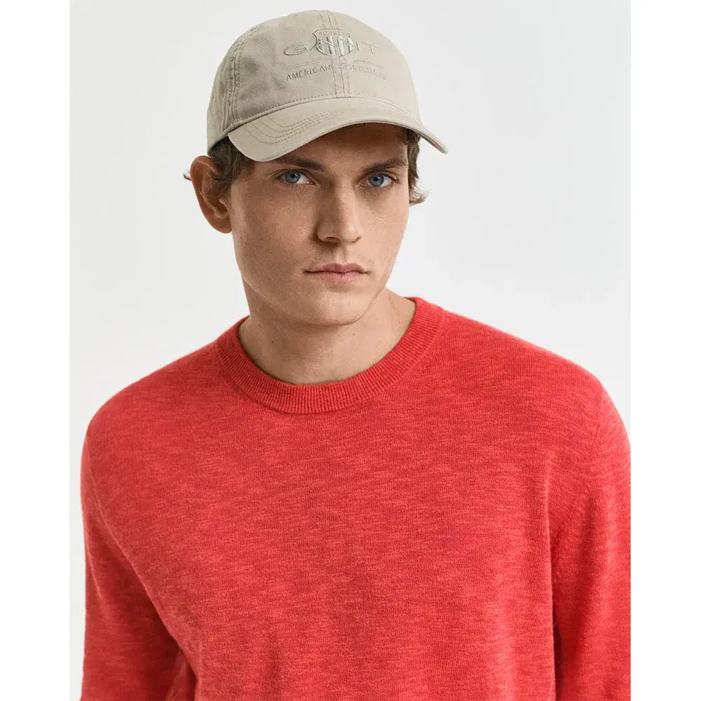 Модель с классическим круглым вырезом горловины украшена рубчатым низом и манжетами на рукавах, а на груди вышит логотип GANT в тон.