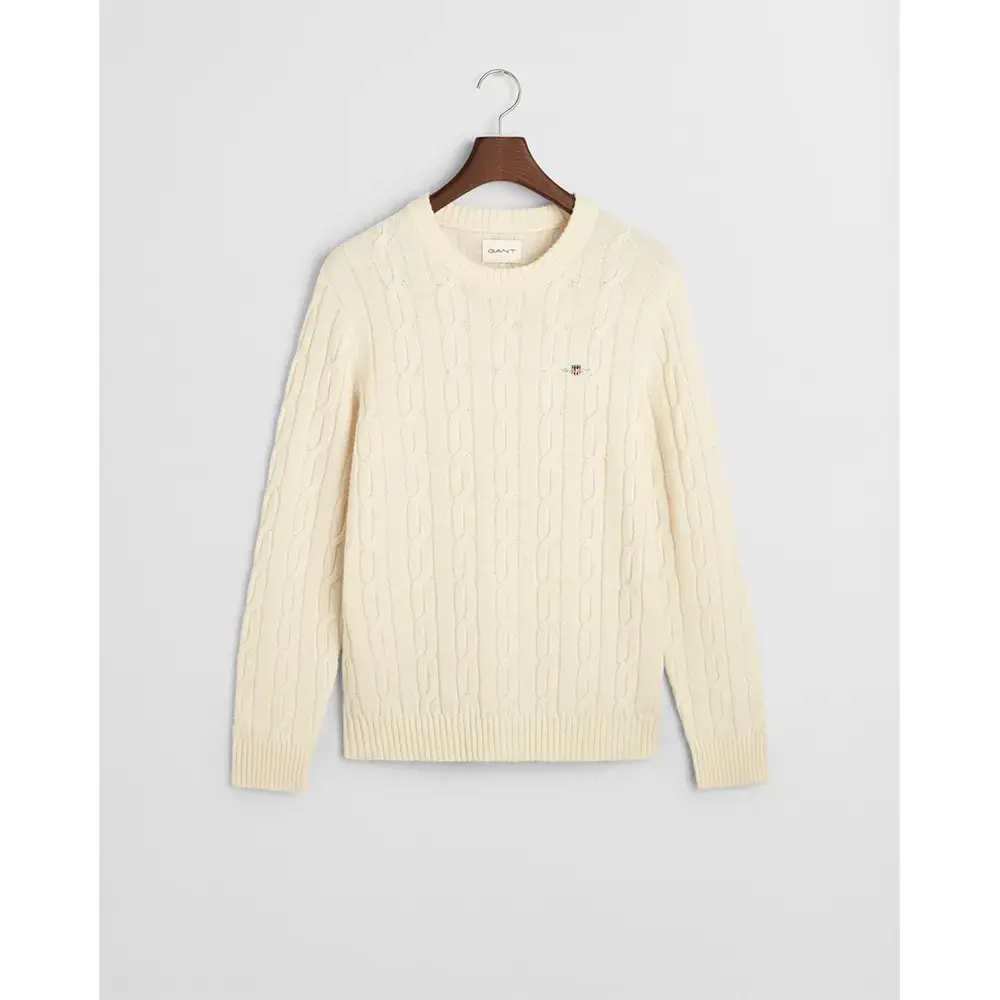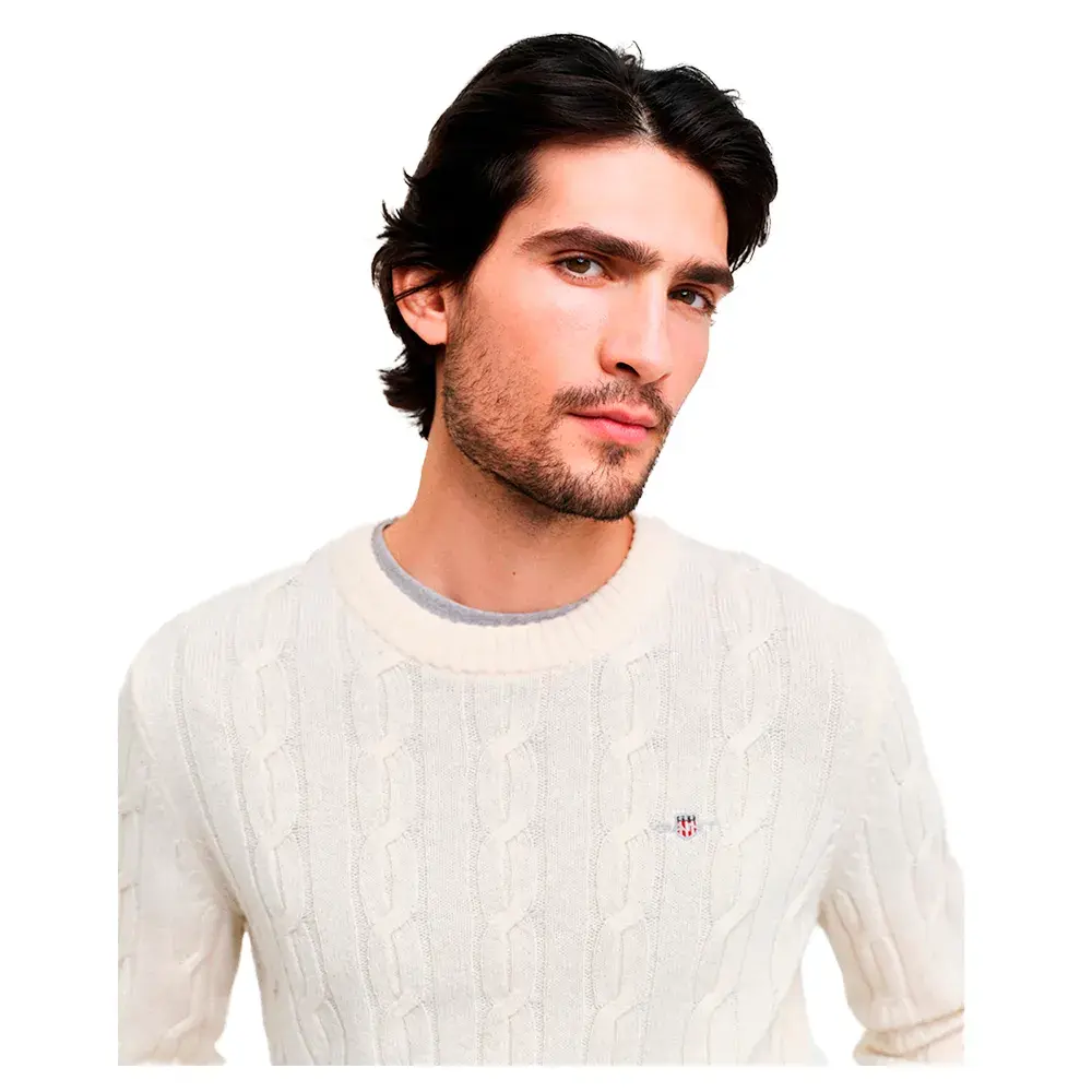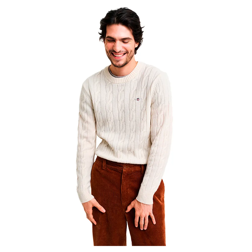 Этот свитер ручной вязки от GANT, выполненный из мягкой и блестящей пряжи из овечьей шерсти, излучает опрятный шарм.