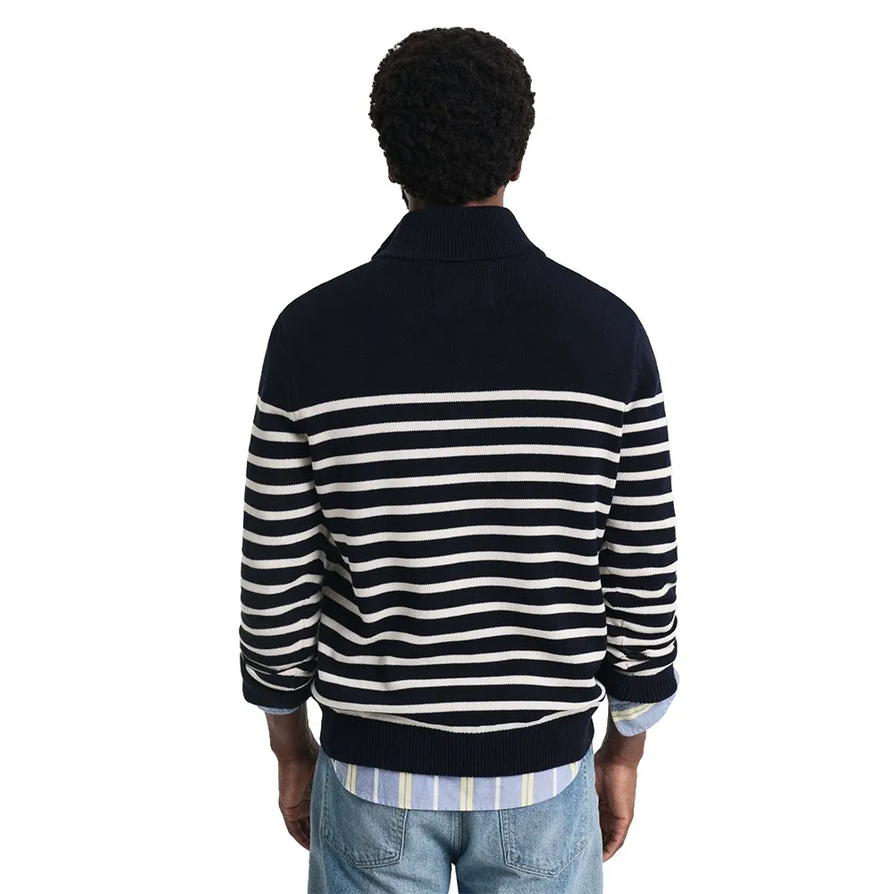 Этот свитер, изготовленный из 100% хлопка, украшен повторяющимися бретонскими полосками по всему телу.