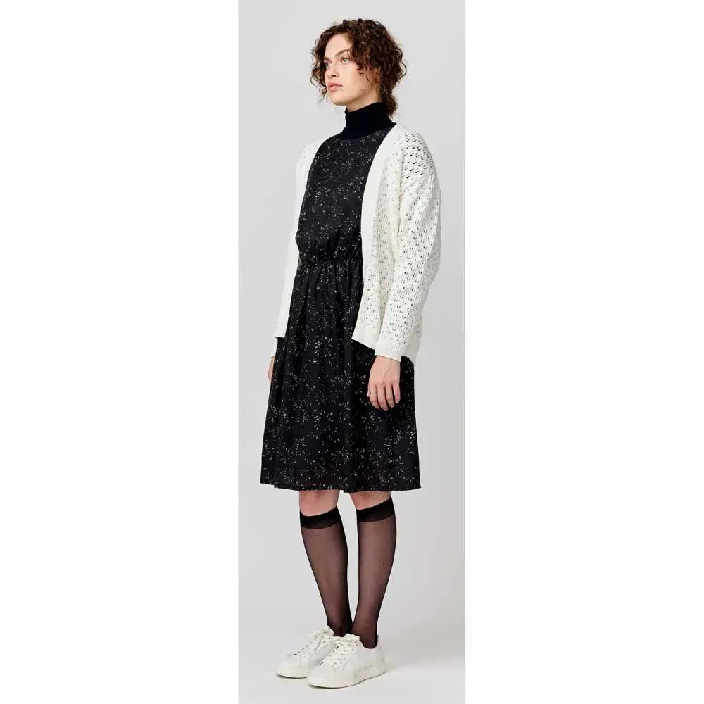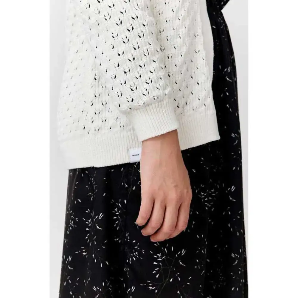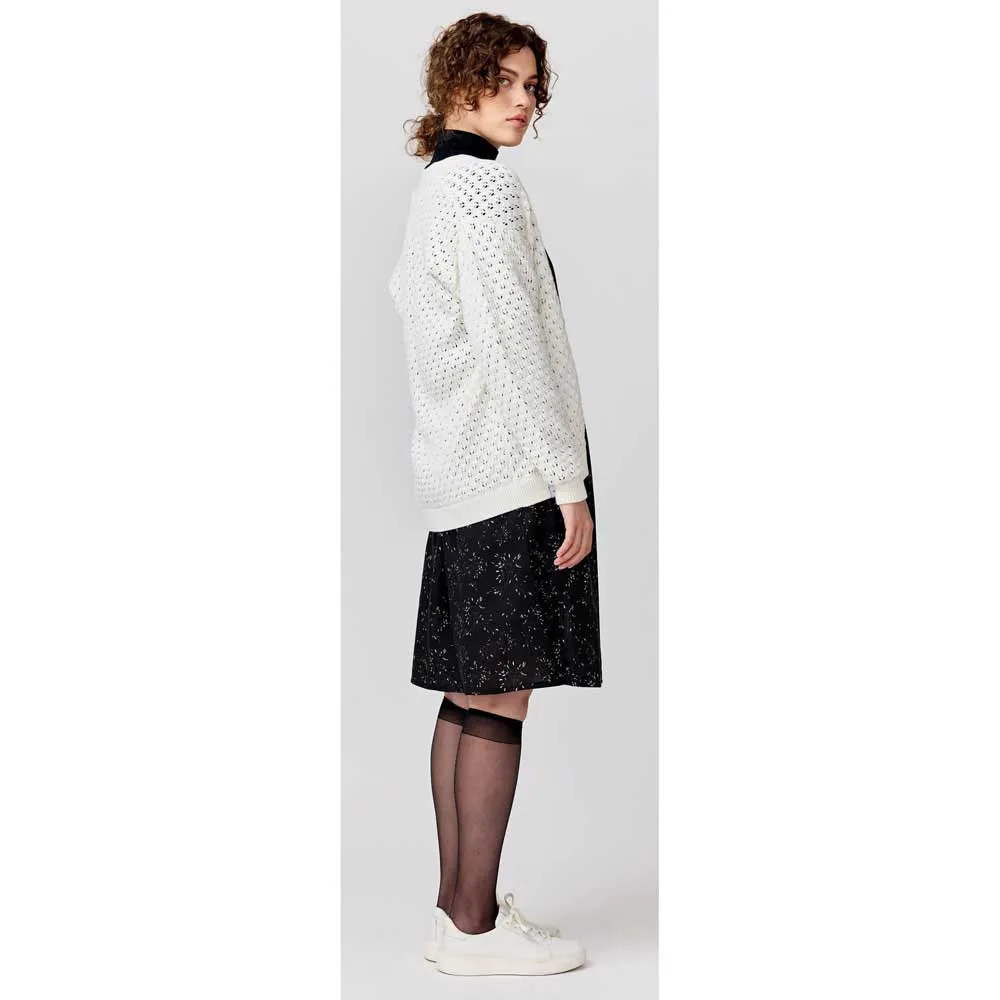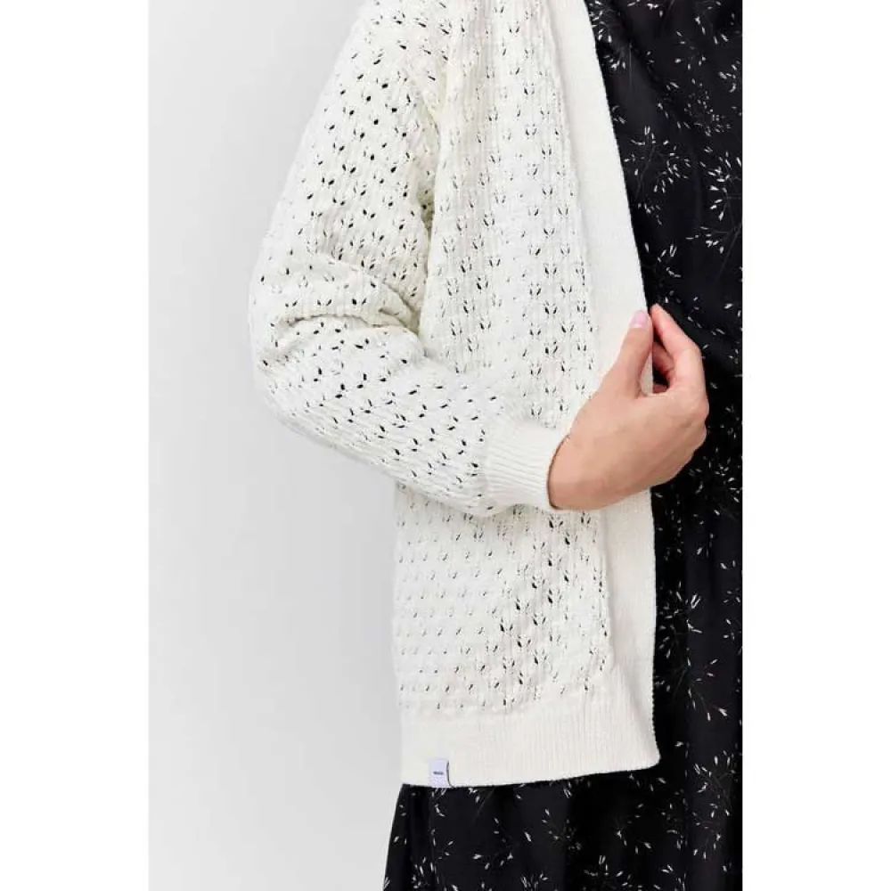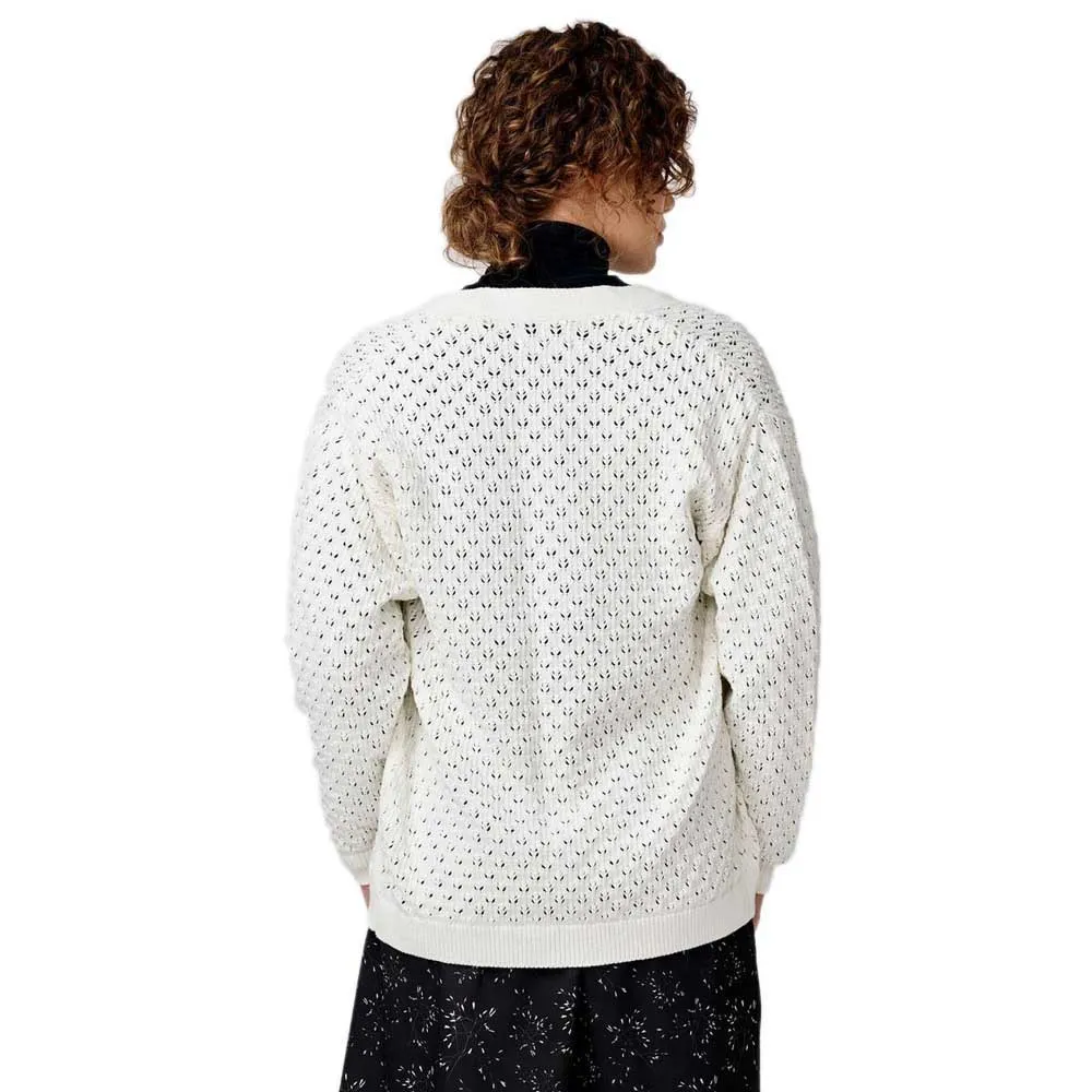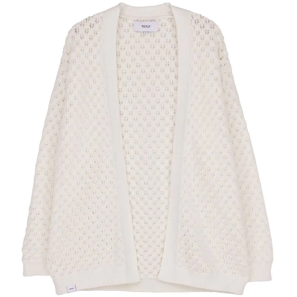 Кардиган ажурной вязки без пуговиц, обычного покроя, длиной ниже бедер.