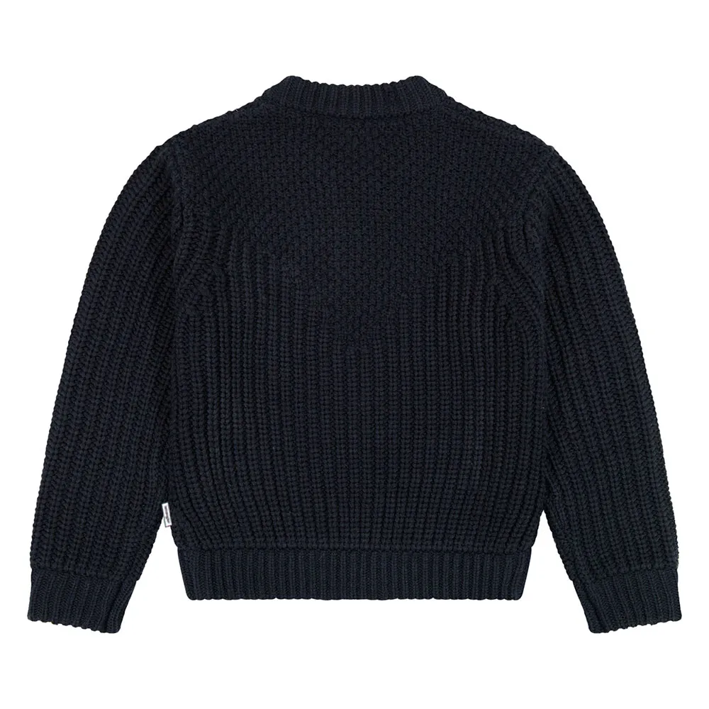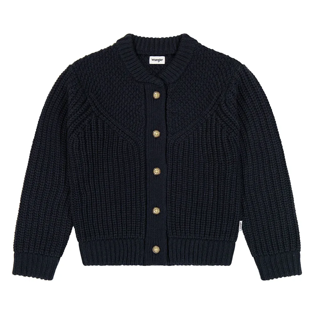 Кокетка в западном стиле, контрастные трикотажные детали и темно-синий оттенок - этот плотный кардиган с длинными рукавами будет хорошо смотреться с чем угодно в вашем гардеробе.