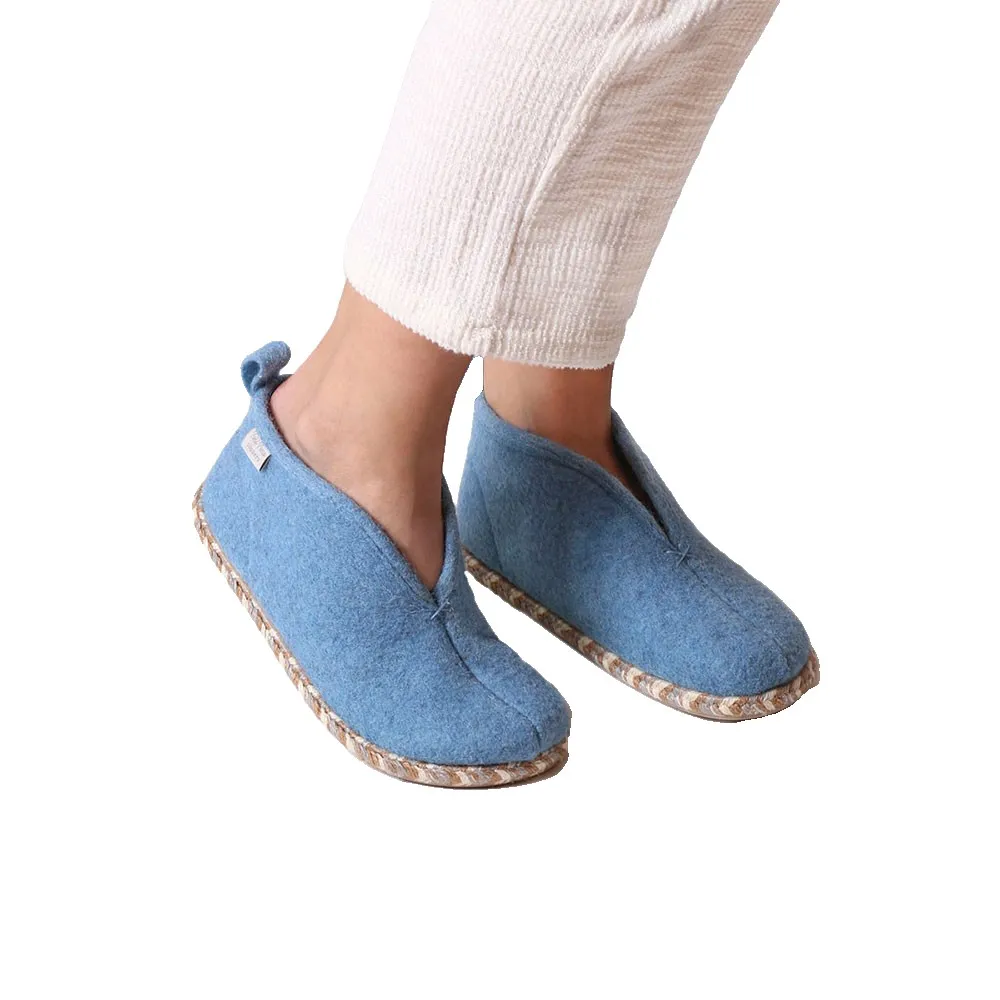 Эти женские тапочки высотой до щиколоток выполнены из войлока однотонных цветов.