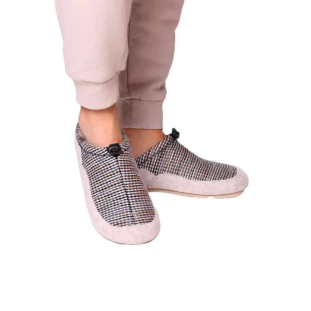Эти мужские тапочки в стиле сабо изготовлены из комбинации ткани и войлока.