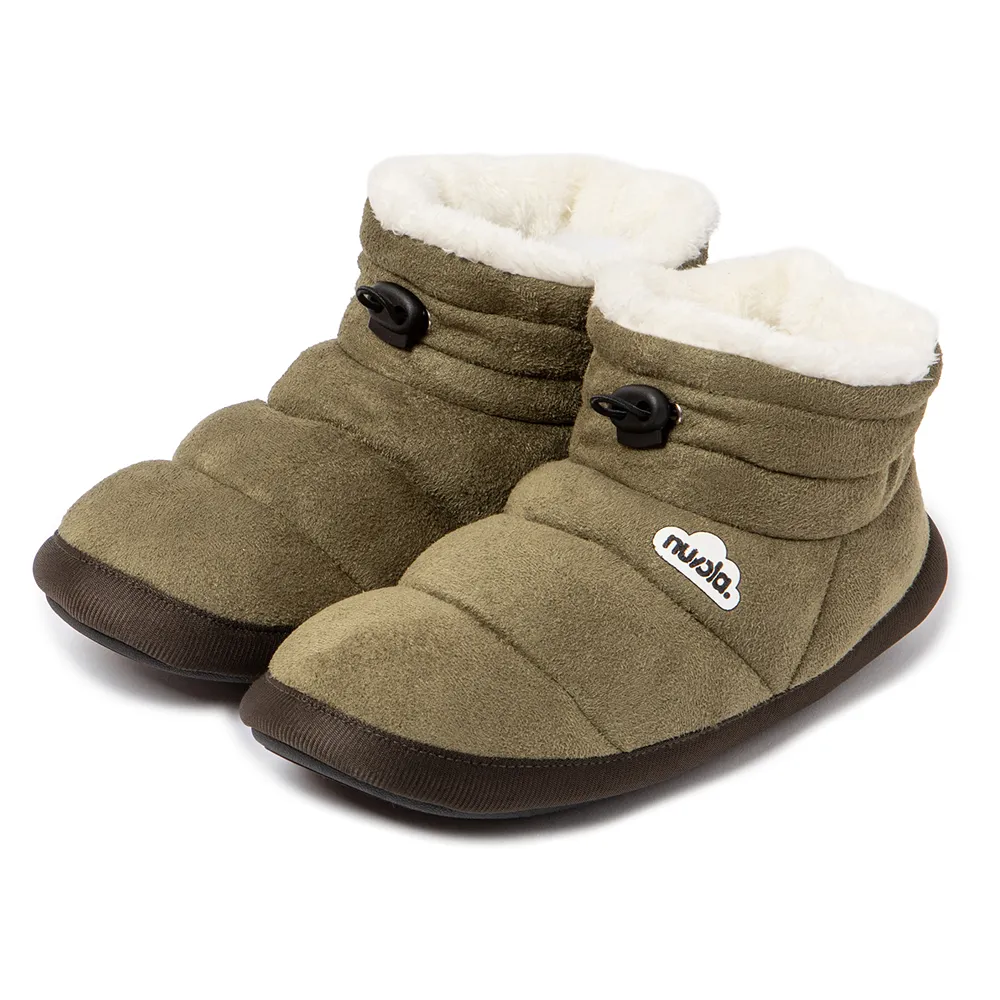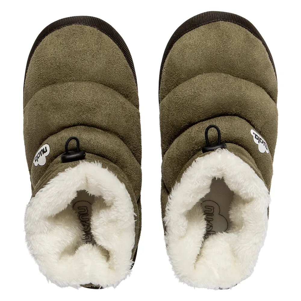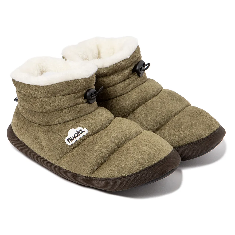 Nuvola Boot Velvet military зеленого цвета - домашние тапочки в стиле ботинок для женщин и мужчин с бархатистой поверхностью.