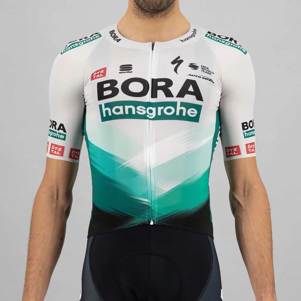 Бывают дни, когда профессионалы BORA-hansgrohe выбирают более классический вариант вместо облегающего костюма. Их просьба была простой: разделить костюм-бомбер на майку и шорты. Именно это мы и сделали. Джерси-бомбер сохраняет все ключевые особенности, разработанные для облегающего костюма: цельная ткань без швов на плечах, рукава из необработанной сетки, молния YKK для открывания одной рукой. Задние карманы стали еще надежнее, если это вообще возможно, благодаря резинке, которую мы добавили для застегивания майки, и мы сохранили два отделения для гоночных номеров. Результатом является наша самая эффективная майка для шоссейных гонок.