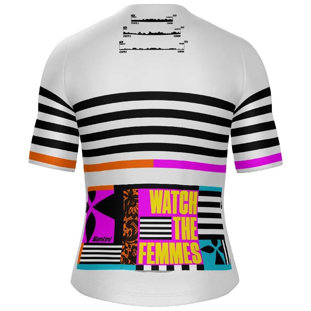 На майке заметно отображается фраза WATCH THE FEMMES, подчеркивающая растущую значимость и видимость гонки.- Приталенный крой с необработанными удлиненными рукавами.
