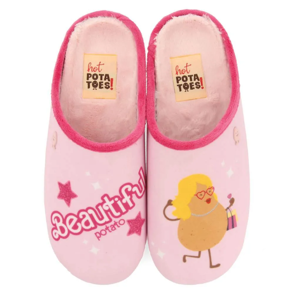 Для самых шикарных! Розовые тапочки с надписью "Красивый картофель".