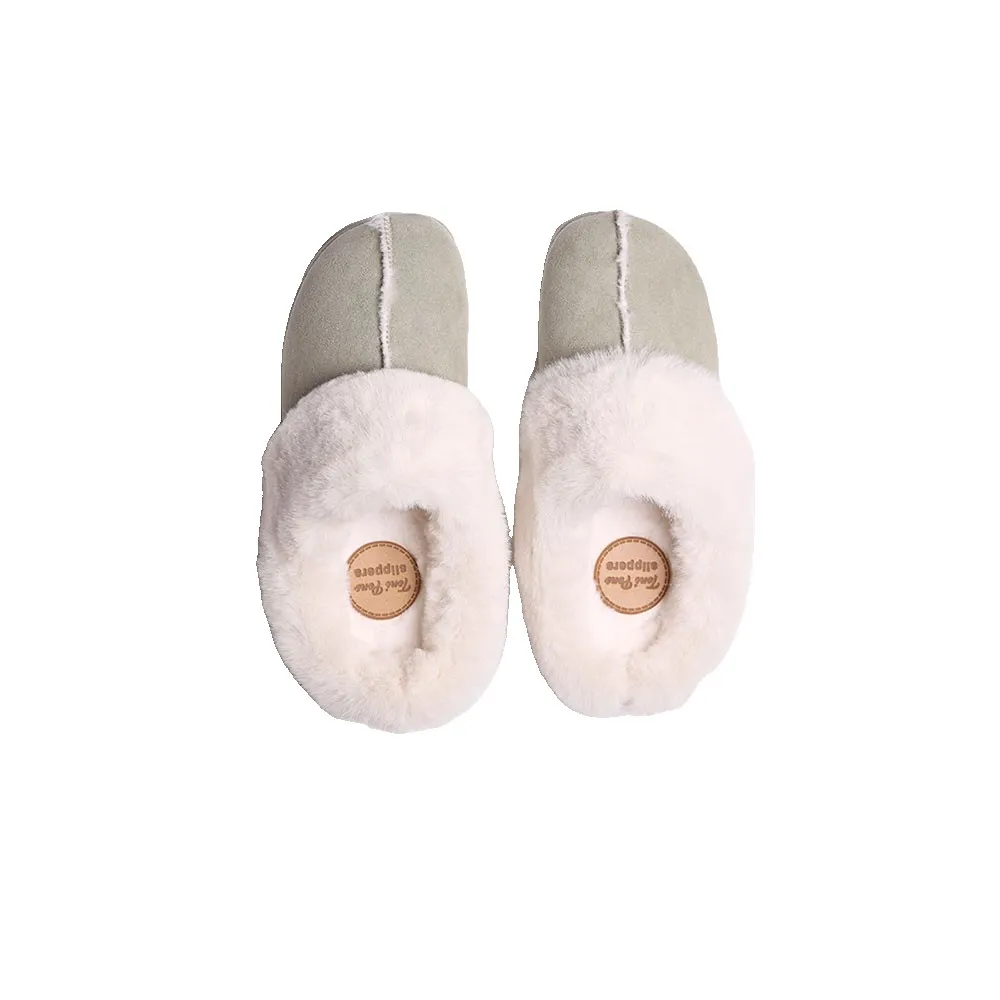 Женские тапочки-сабо из однотонной ткани и мягкого белого синтетического меха.