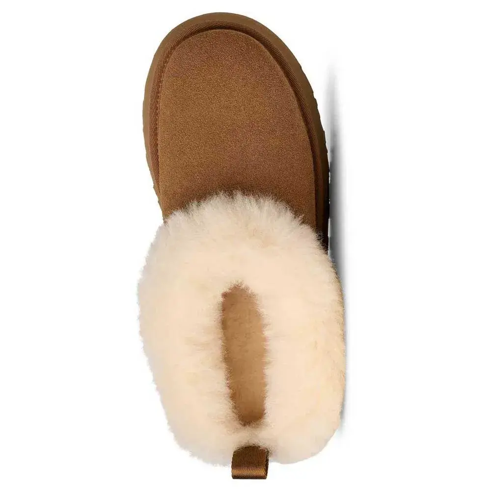 Внутренняя отделка из овчины переходит в пышную фиксированную манжету, так что вы можете носить их как с носками, так и без.