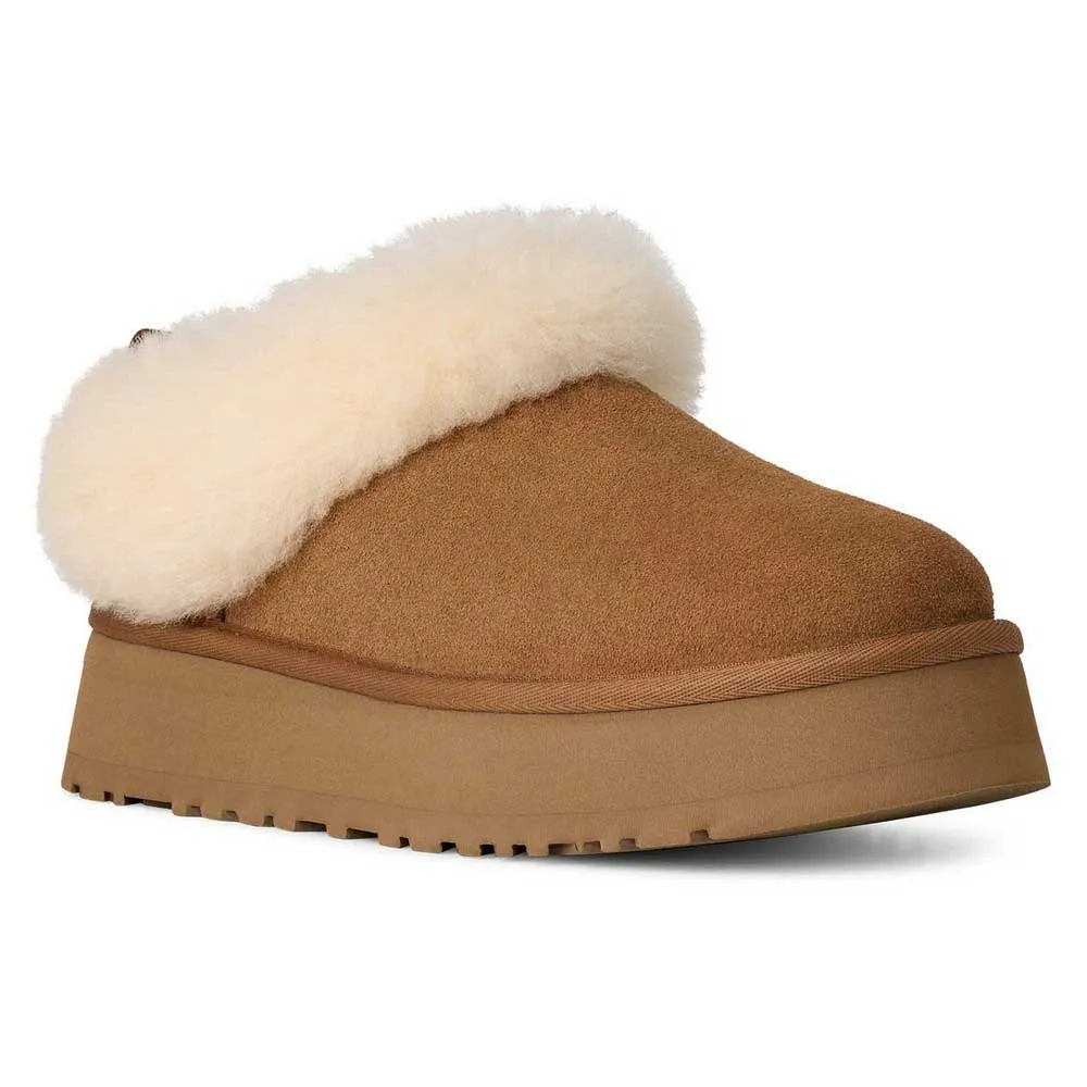 Эти ультраплюшевые тапочки для дома и улицы выполнены из натуральной замши и имеют легкую платформу толщиной 1,75 дюйма, изготовленную из эластичного материала EVA из сахарного тростника.