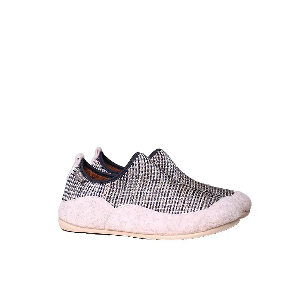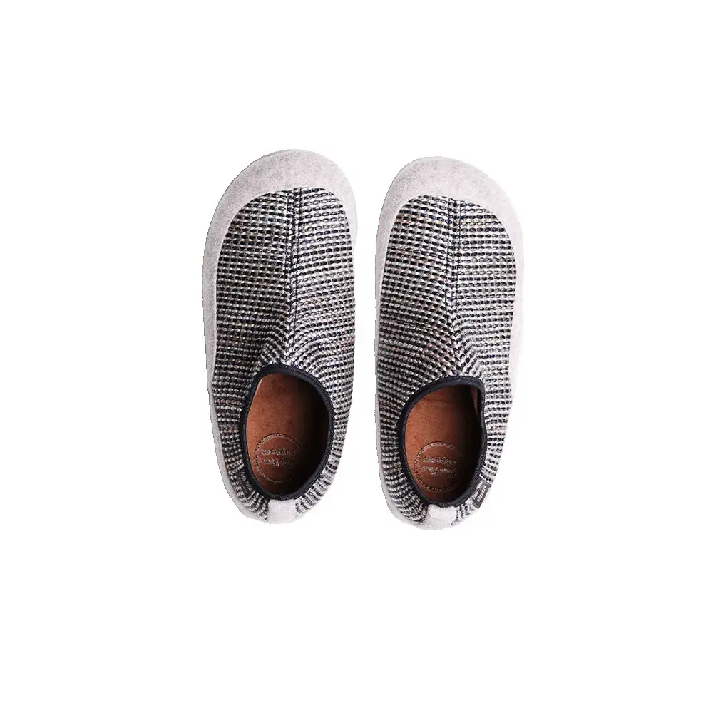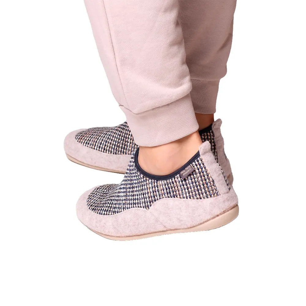 Эти мужские тапочки с закрытым носком выполнены из клетчатой ткани в сочетании с однотонным фетром.