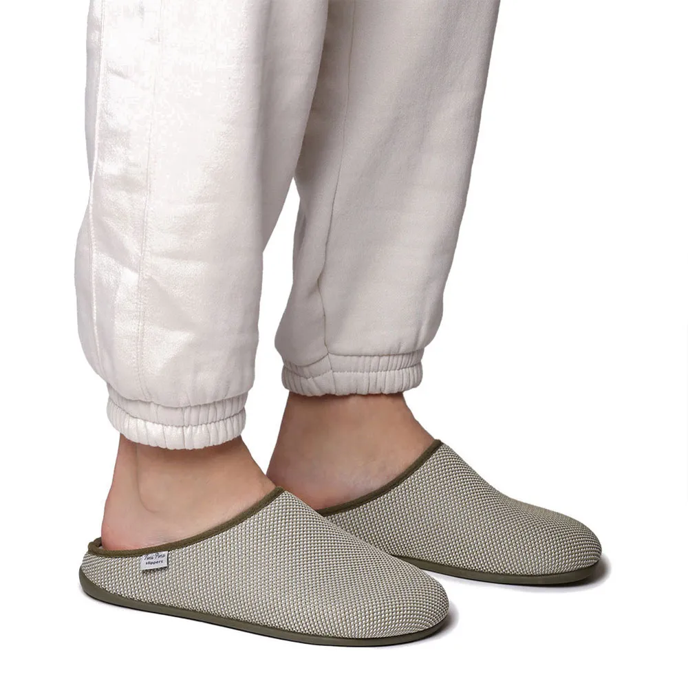 Эти мужские домашние тапочки в стиле сабо изготовлены из сетчатой ткани.