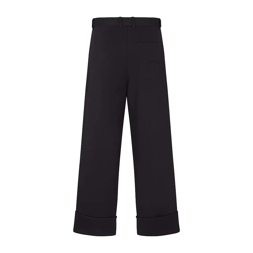 5 карманов в виде брюк, шлевки для ремня, прорезные карманы, широкие штанины и фиксированные закатки.