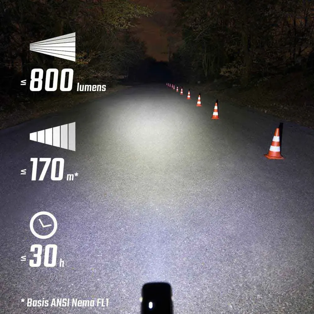 Buster 800 превосходно справляется с работой на темной, пересеченной местности и узких трассах для горного велосипеда.