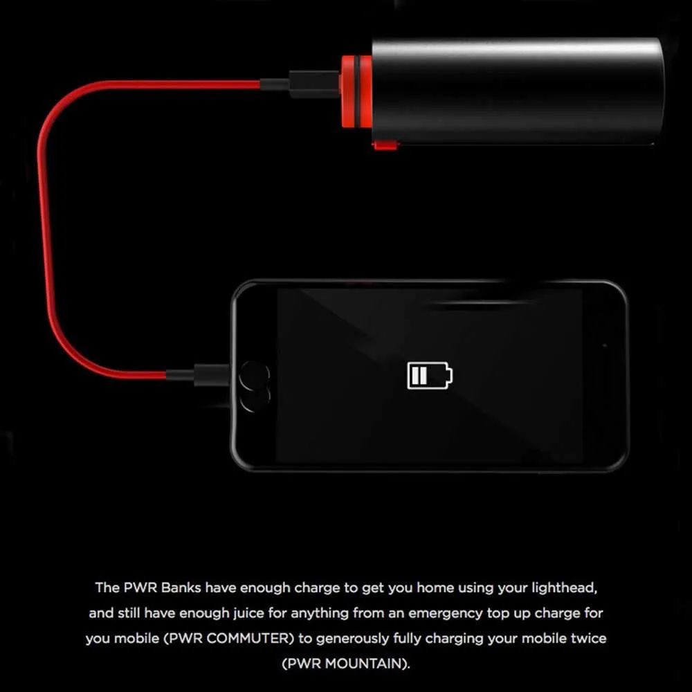 - Нажмите красную кнопку, чтобы отсоединить головку, и используйте зарядное устройство PWR для зарядки телефона, GoPro, велокомпьютера или другого устройства. 1 час езды при 1000 люмен означает, что вы можете пополнить заряд своего iPhone на 75%. Зарядите PWR Trail с помощью входящего в комплект кабеля micro USB, время зарядки составляет 3,5 часа.