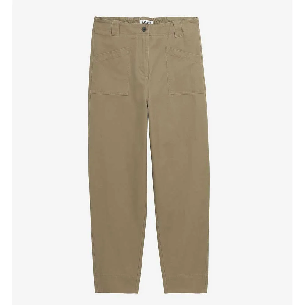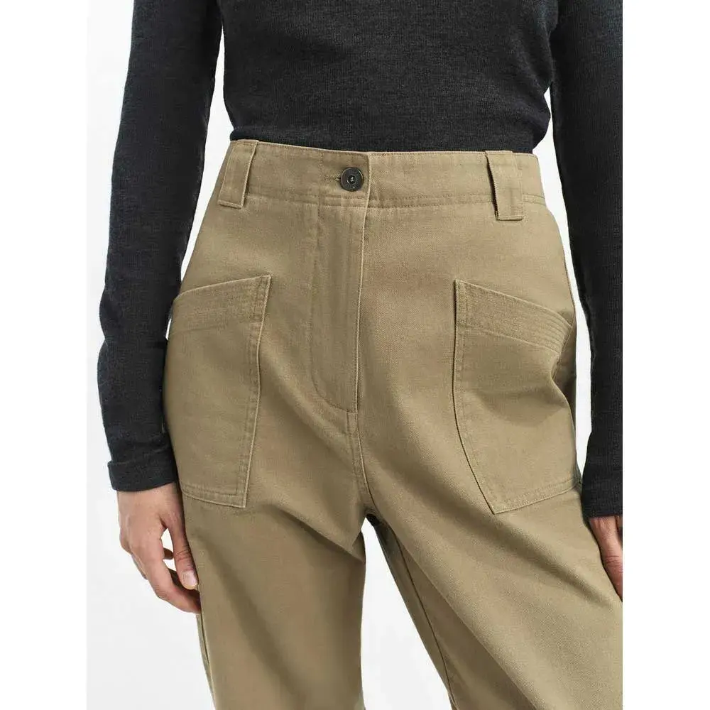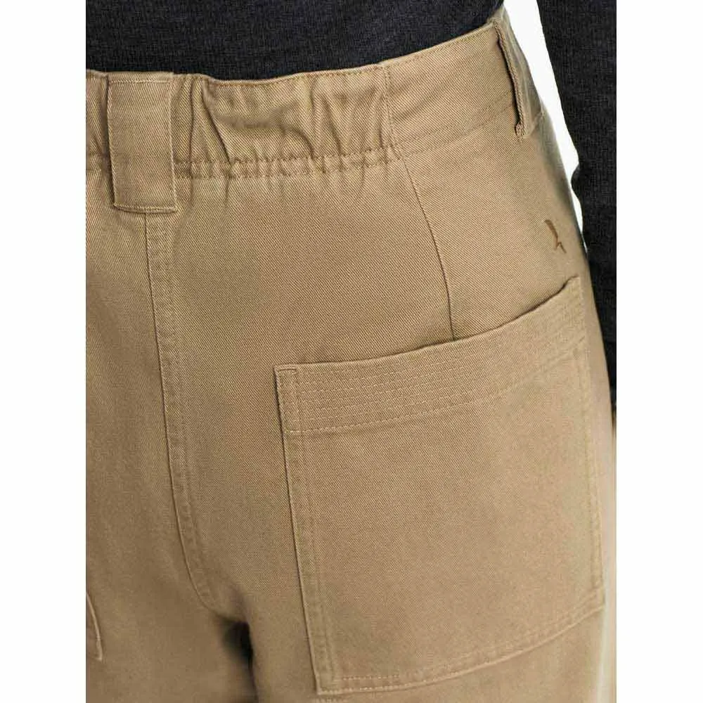 Брюки из эко-вельвета морковного цвета с эластичным поясом сзади для оптимального комфорта. Большие накладные карманы спереди и сзади, подчеркнутые отстрочкой сверху, придают образу графичности и подчеркивают силуэт.