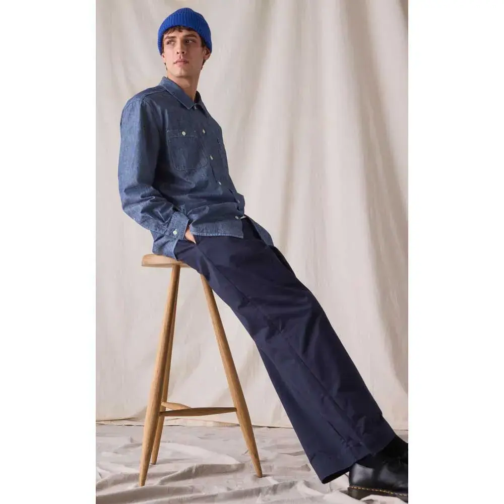 Сшитый из сверхпрочной саржи весом 10 унций, с непримиримо свободным кроем и стилем, вдохновленным стандартными образцами времен Второй мировой войны, этот стиль напоминает находку из комиссионного магазина—за вычетом многочасовой чистки.