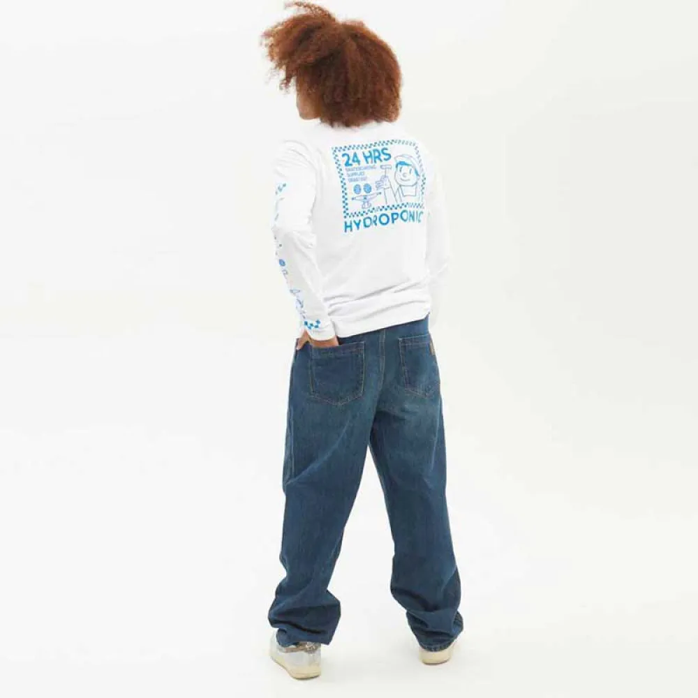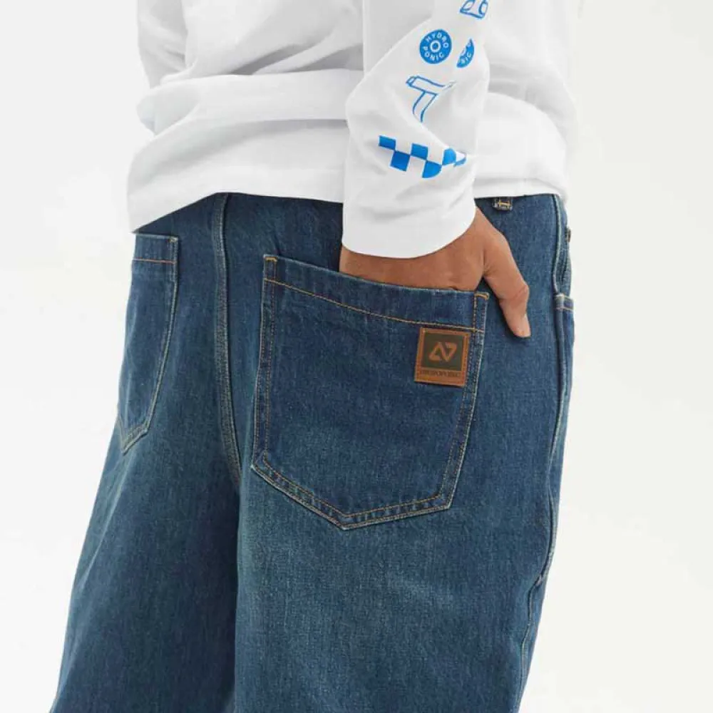 Hydroponic Wisdom - это джинсы свободного покроя с 5 карманами, с более широким, чем обычно, отверстием для штанин, с застежками и тройной строчкой в местах, наиболее подверженных износу из-за катания на скейтборде, которые придают этим брюкам долговечность.