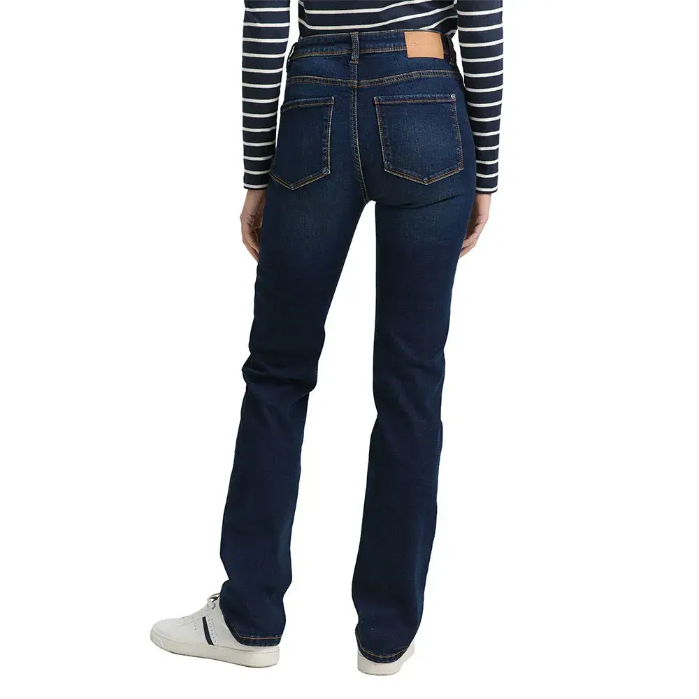 Джинсы с высокой талией и пятью карманами, с боковыми карманами спереди и накладными карманами сзади.