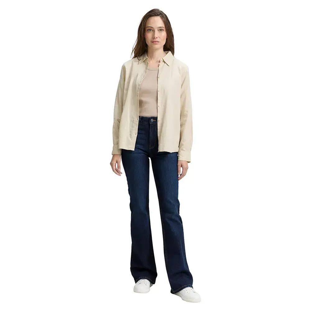 Джинсы с высокой талией и пятью карманами, с боковыми карманами спереди и накладными карманами сзади.
