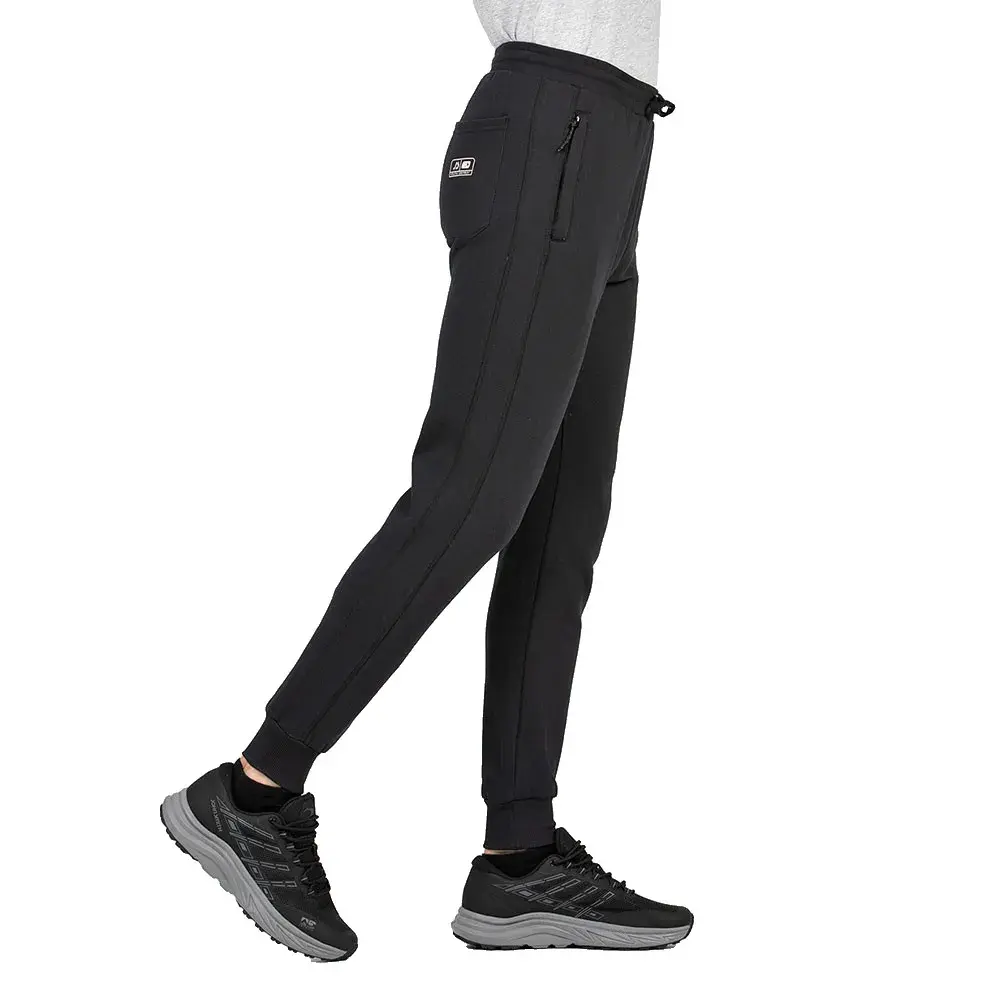 Длинные брюки с манжетами в рубчик, из матовой флисовой ткани, боковыми карманами на молнии, поясом с завязками для регулировки, накладным задним карманом и напечатанным логотипом на штанине.