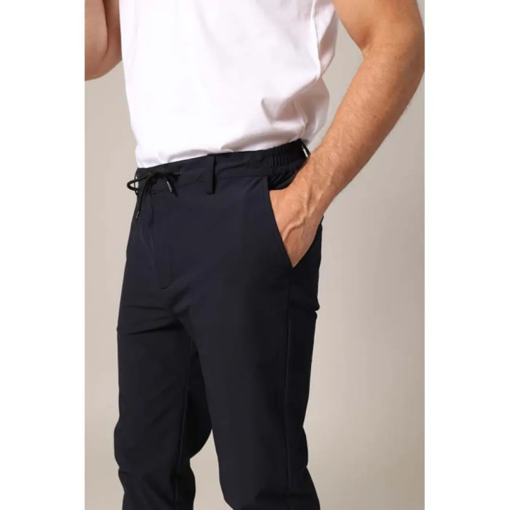 Мужские брюки JULIO в повседневном и современном стиле. Эти брюки имеют удобный прямой крой с эластичным поясом сзади, кулиской спереди, застежкой на молнию с пуговицей, а также шлевками для ремня. У них два итальянских кармана по бокам и два прорезных кармана сзади. Слегка эластичный материал и аккуратный крой делают их идеальной деталью повседневного городского образа.