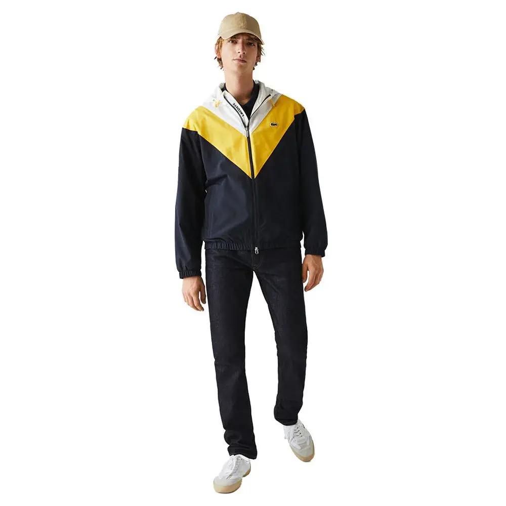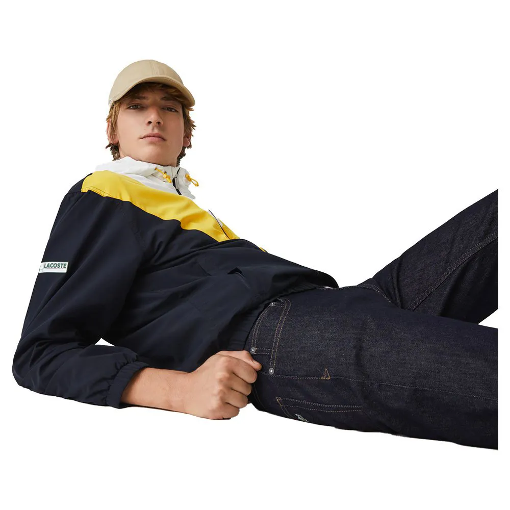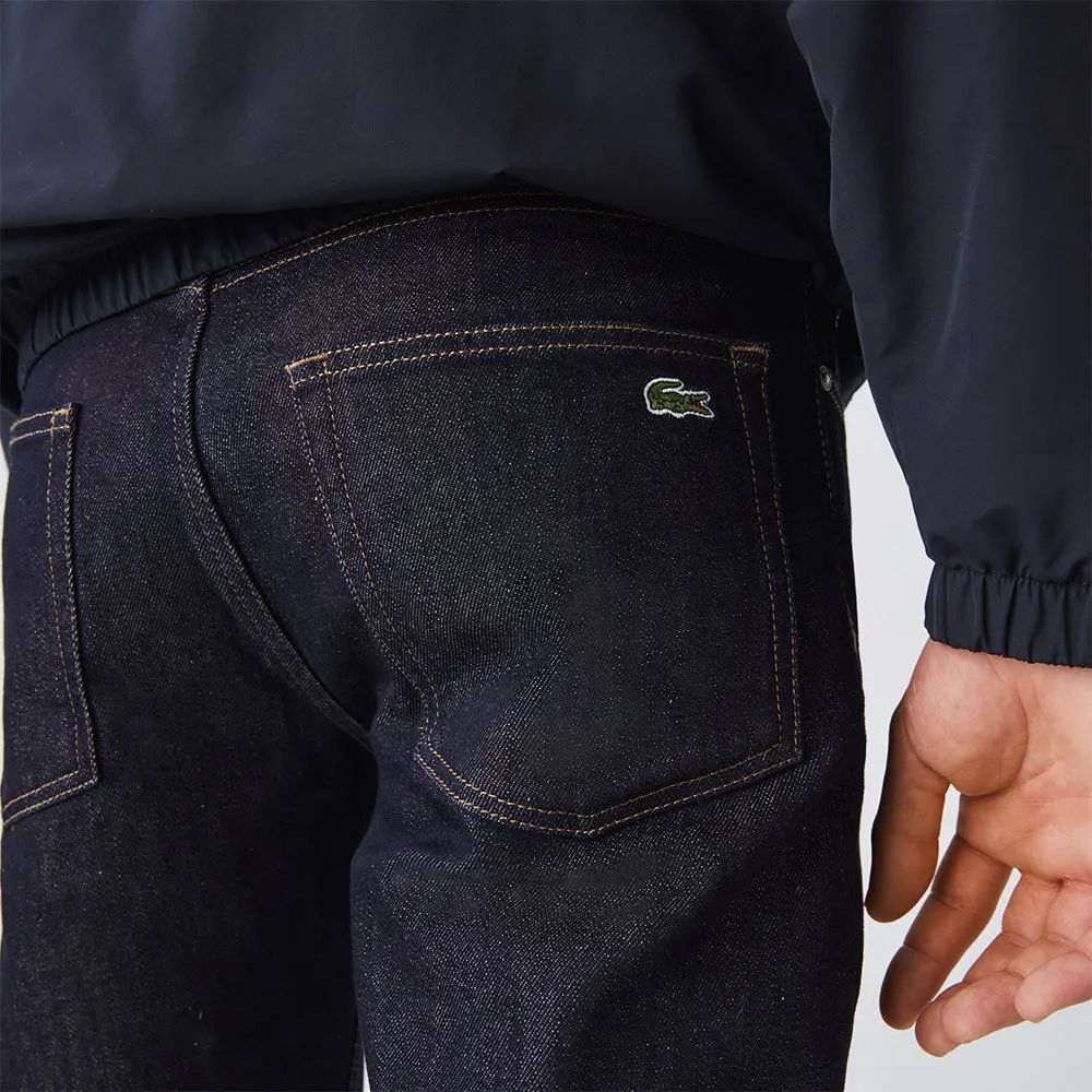 На заднем кармане вышитая зеленая крокодиловая эмблема.
