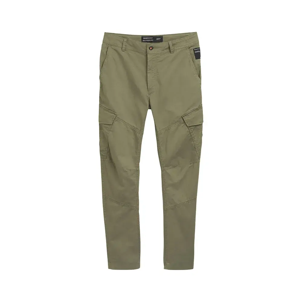 Современные брюки-карго с накладными карманами по бокам штанин, боковыми прорезными карманами и прорезными карманами сзади.
