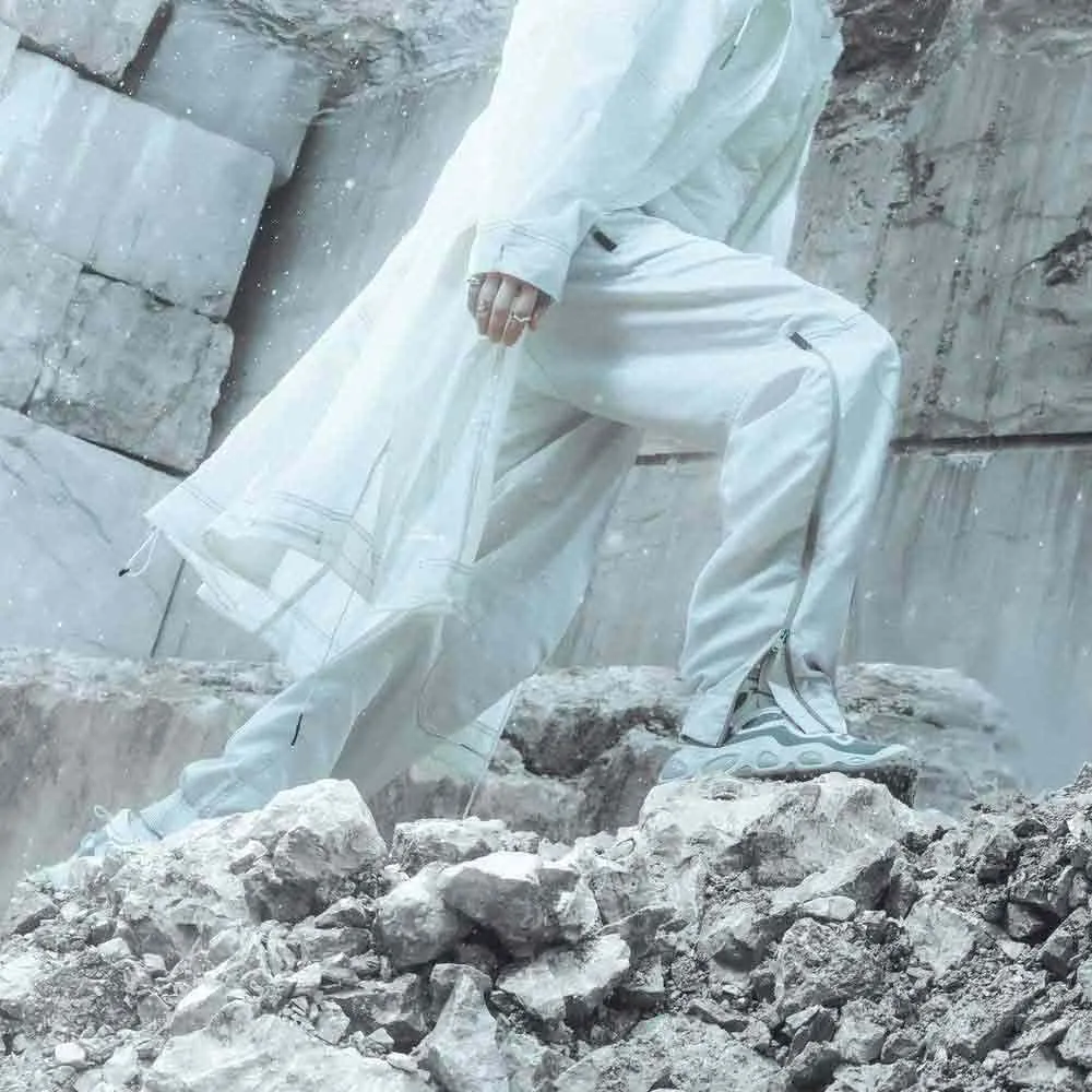 - Боковые отверстия для молнии на штанинах, начинающиеся от коленного сустава