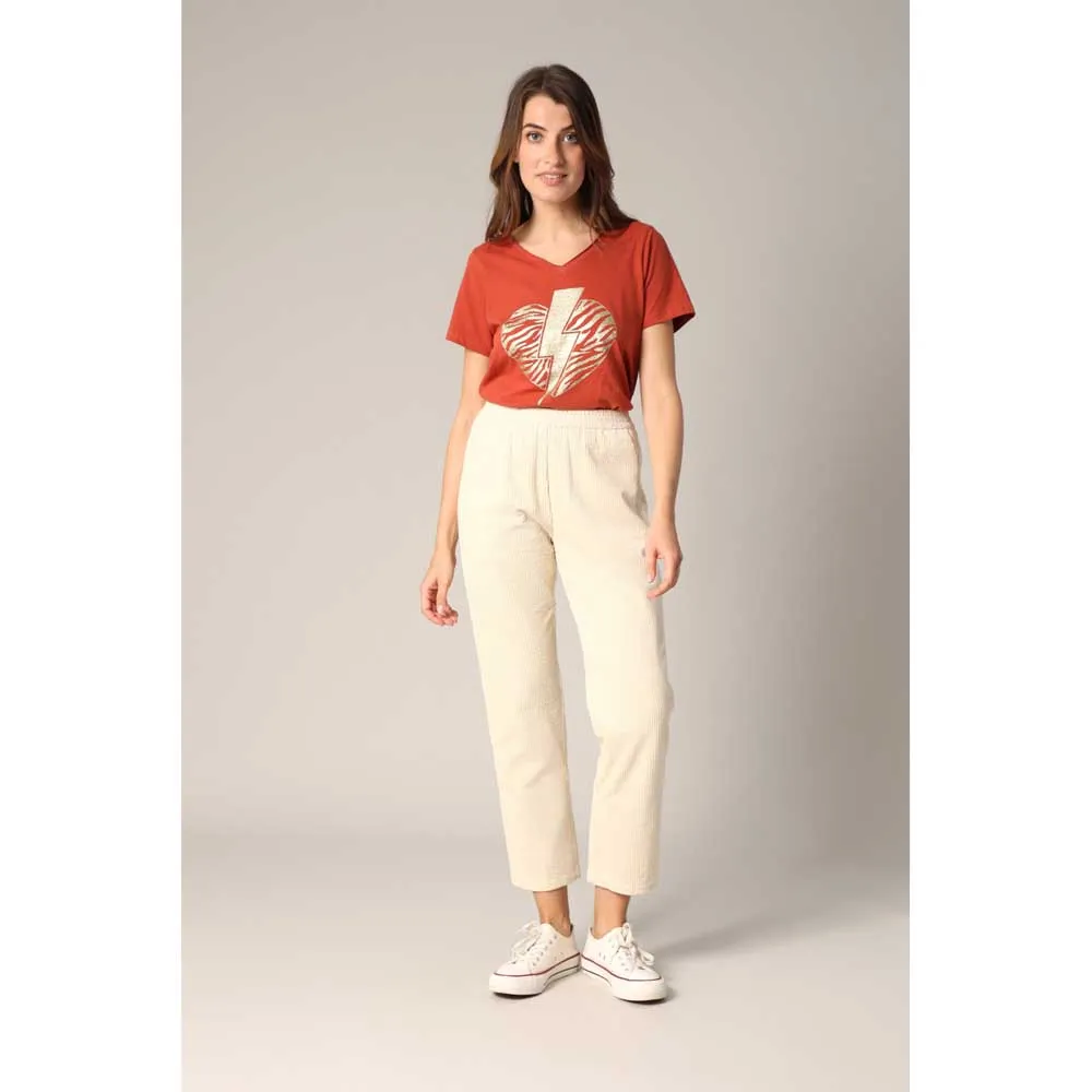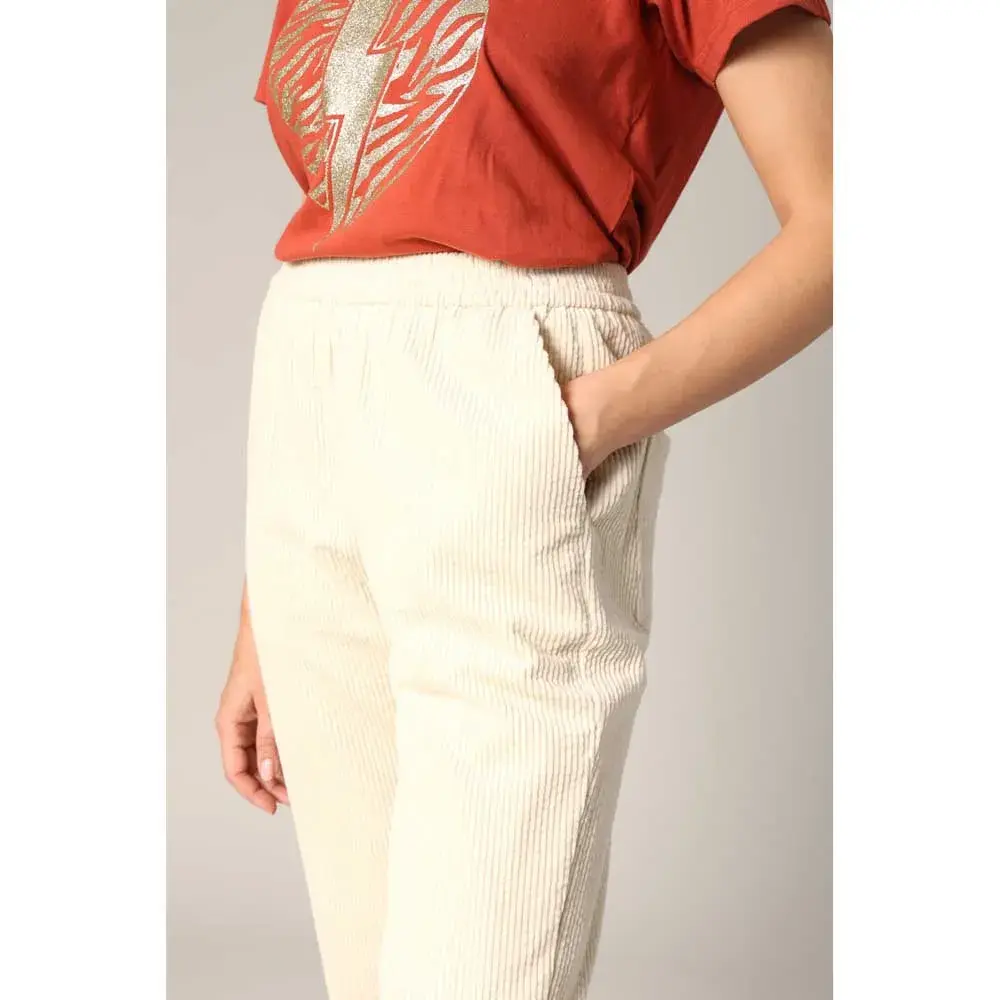Эти прямые брюки привлекательны благодаря мягкому материалу и удобному крою, они идеально подходят для повседневного образа без ущерба для стиля. Эластичный пояс обеспечивает оптимальную посадку, а боковые карманы подчеркивают практичность. Вельвет придает ансамблю элегантную текстуру. Эта модель изготовлена из 100% хлопка, гарантирующего мягкость и воздухопроницаемость на каждый день.