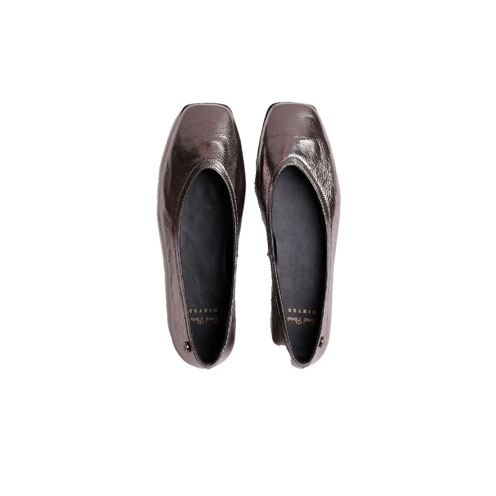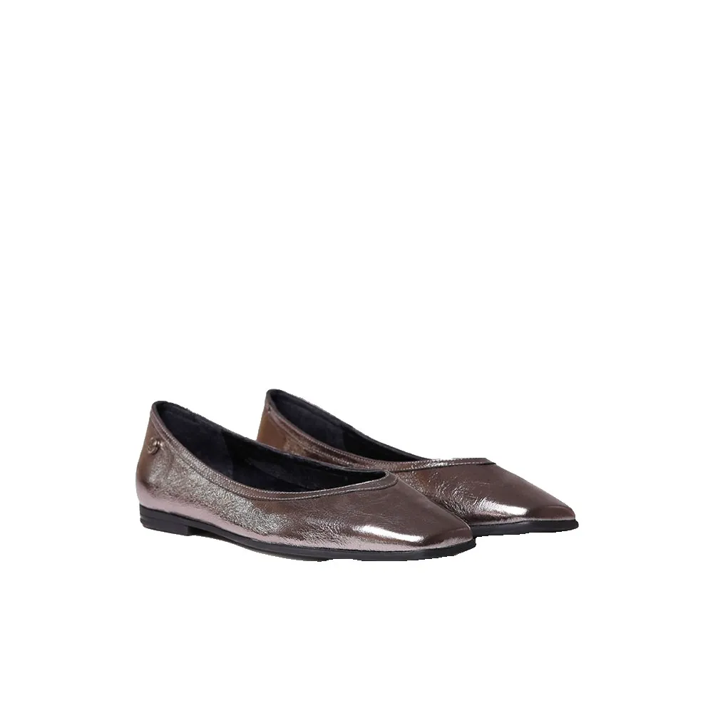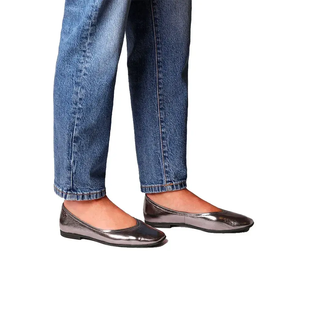 Эти женские балетки изготовлены из кожи с блестящим эффектом.
