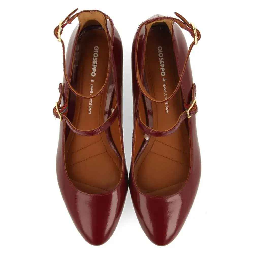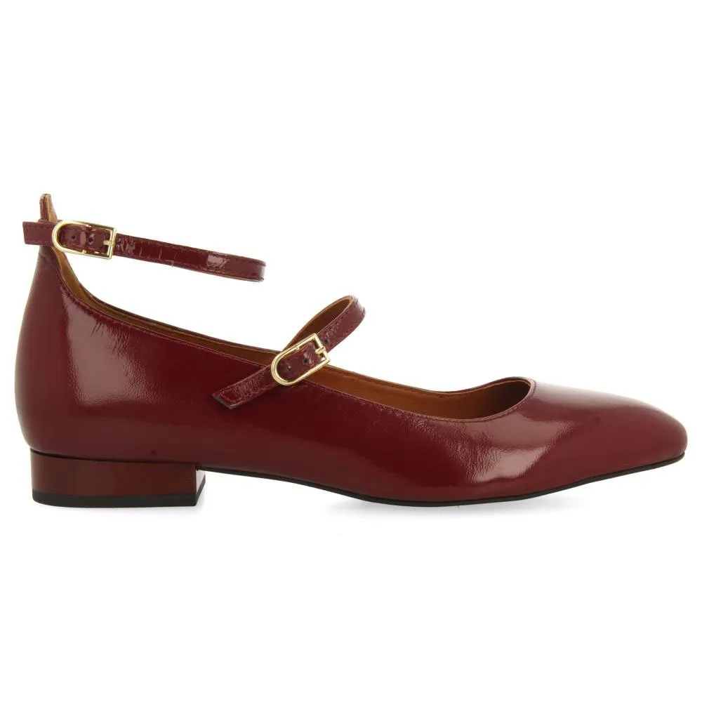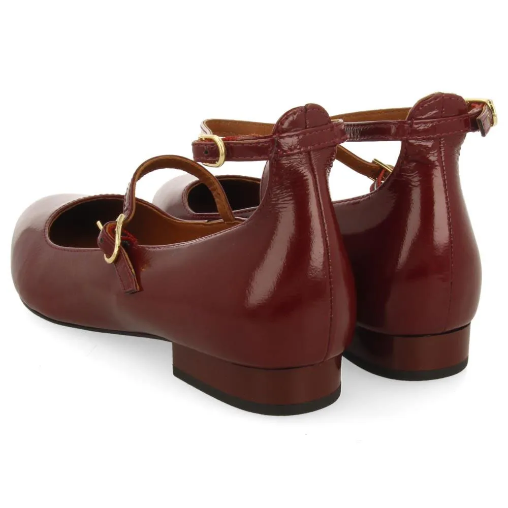 Бордовые балетки из лакированной кожи с регулируемыми застежками.