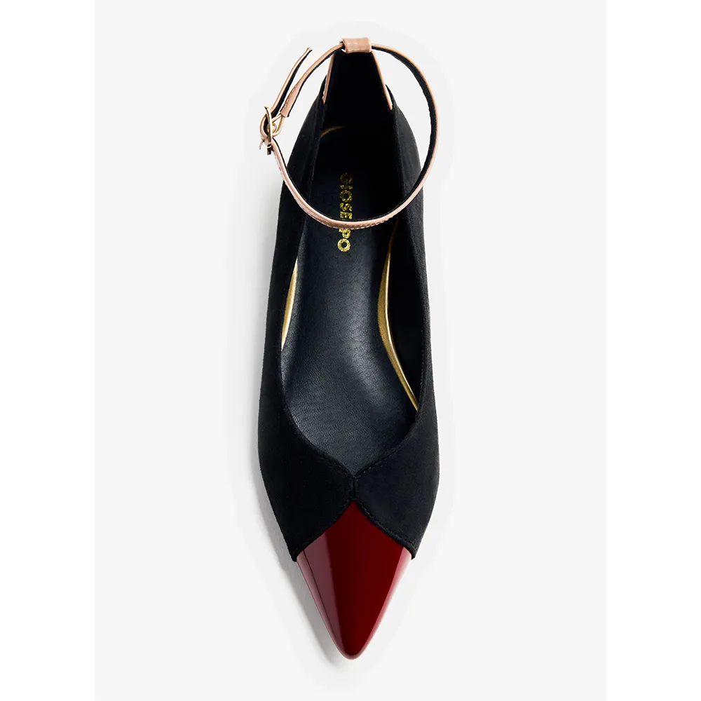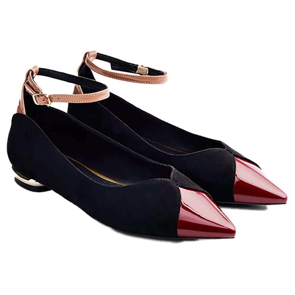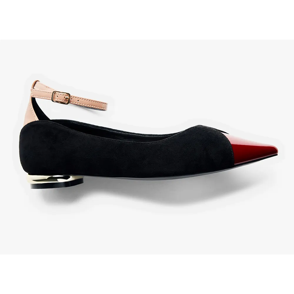 Балетки с отделкой из замши контрастных цветов и текстур.