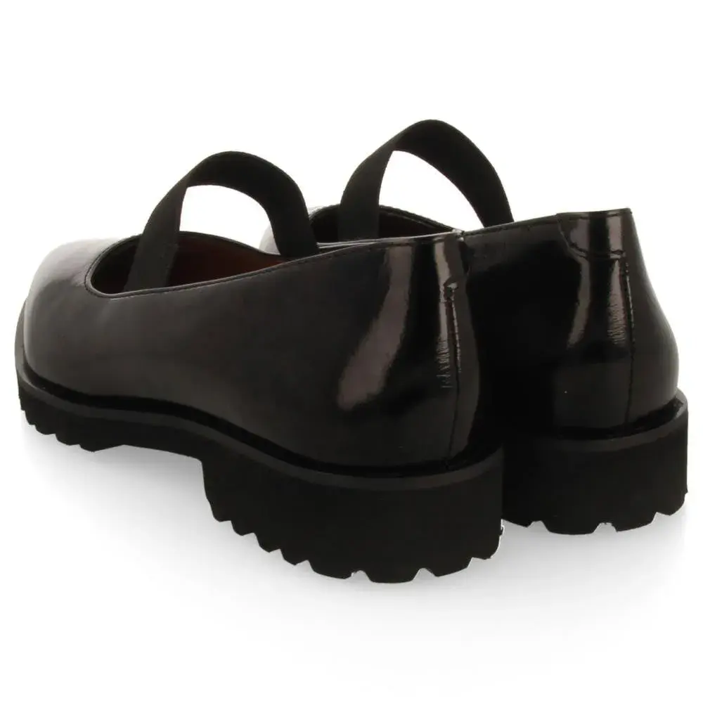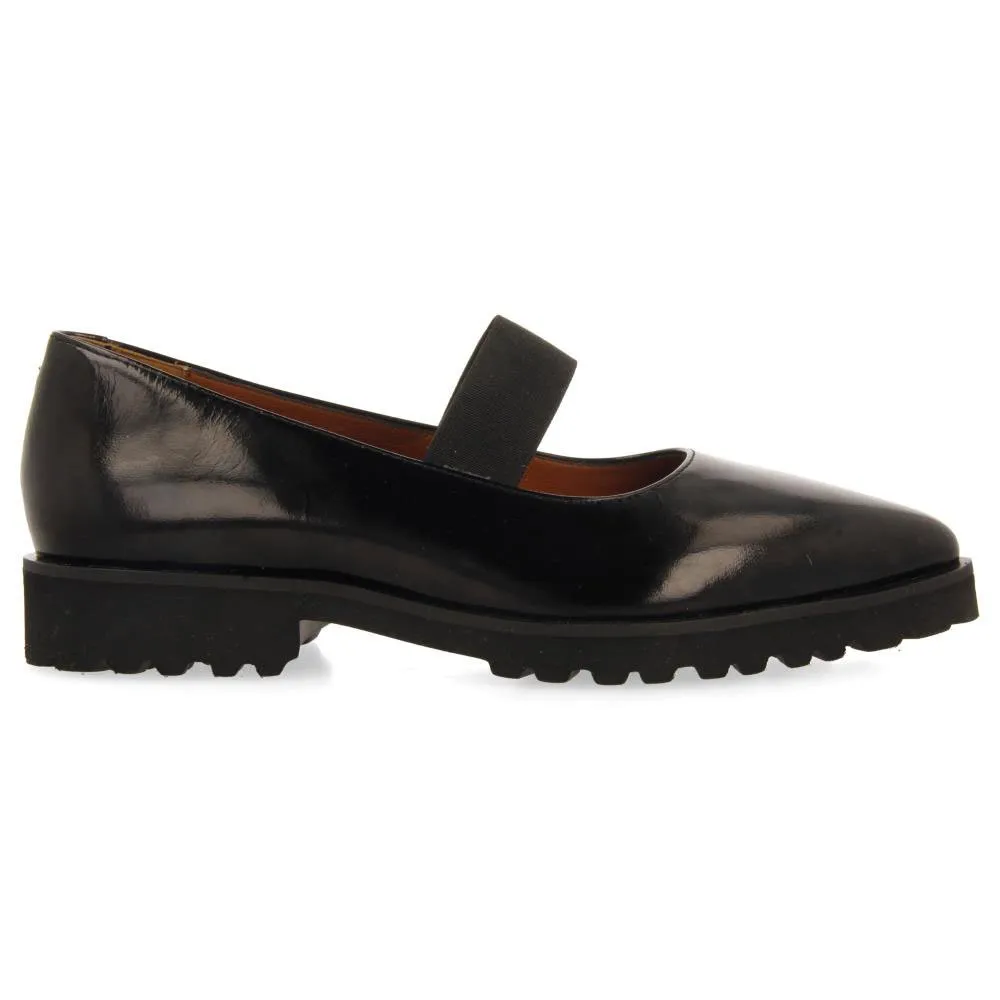 Черные балетки с лакированным эффектом на эластичном заостренном носке и спортивной подошве.