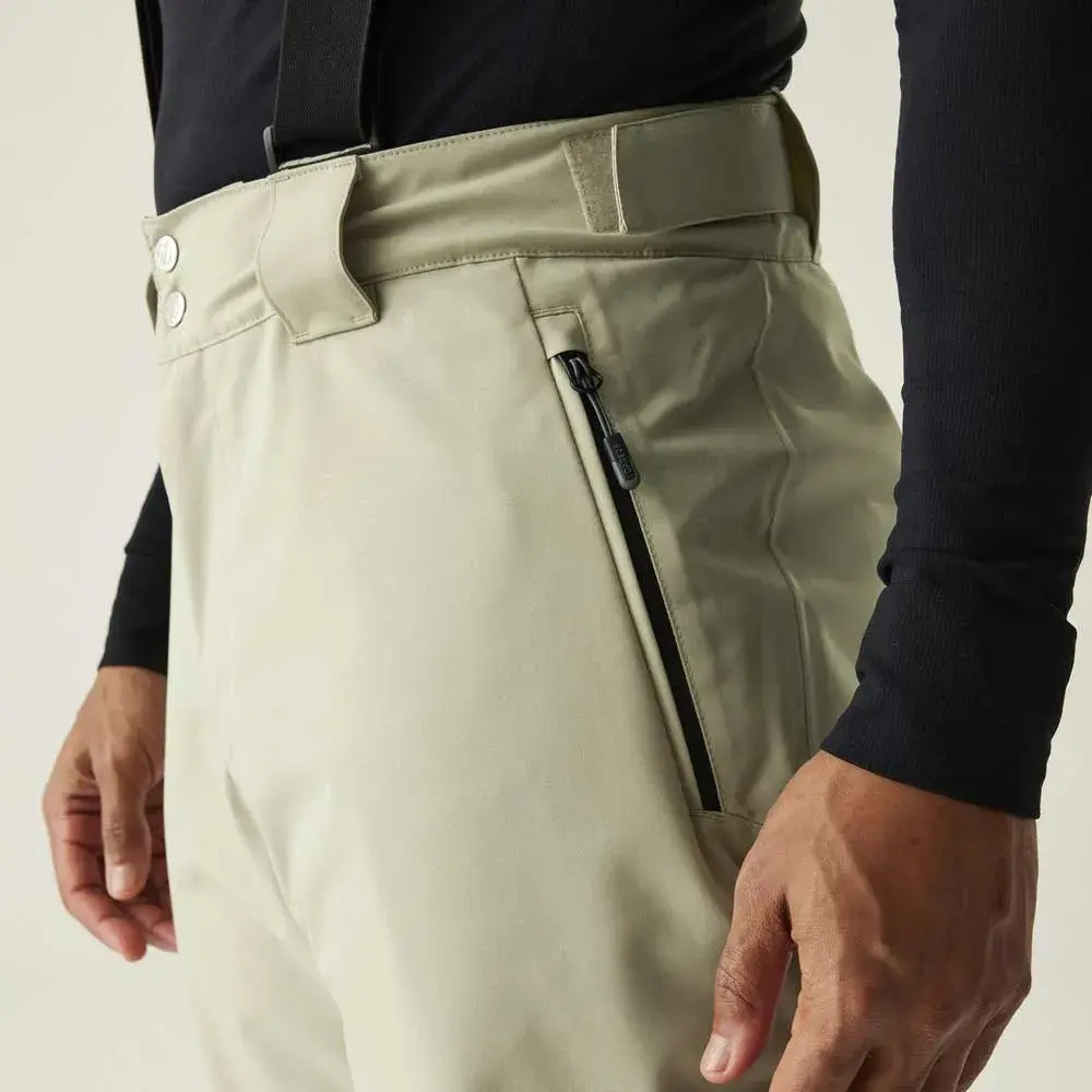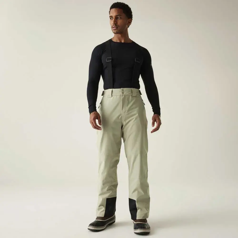 Водонепроницаемые мужские горнолыжные брюки Achieve II. Переработанная водонепроницаемая и дышащая эластичная ткань ARED 20/30 сохранит тепло и сухость на склонах. Герметичные швы обеспечивают полную водонепроницаемость. Эластичность в четырех направлениях и анатомический крой колена обеспечивают аэробную подвижность, позволяя вам заниматься своими делами. Съемная система нагрудника и регулируемый пояс для точной подгонки.