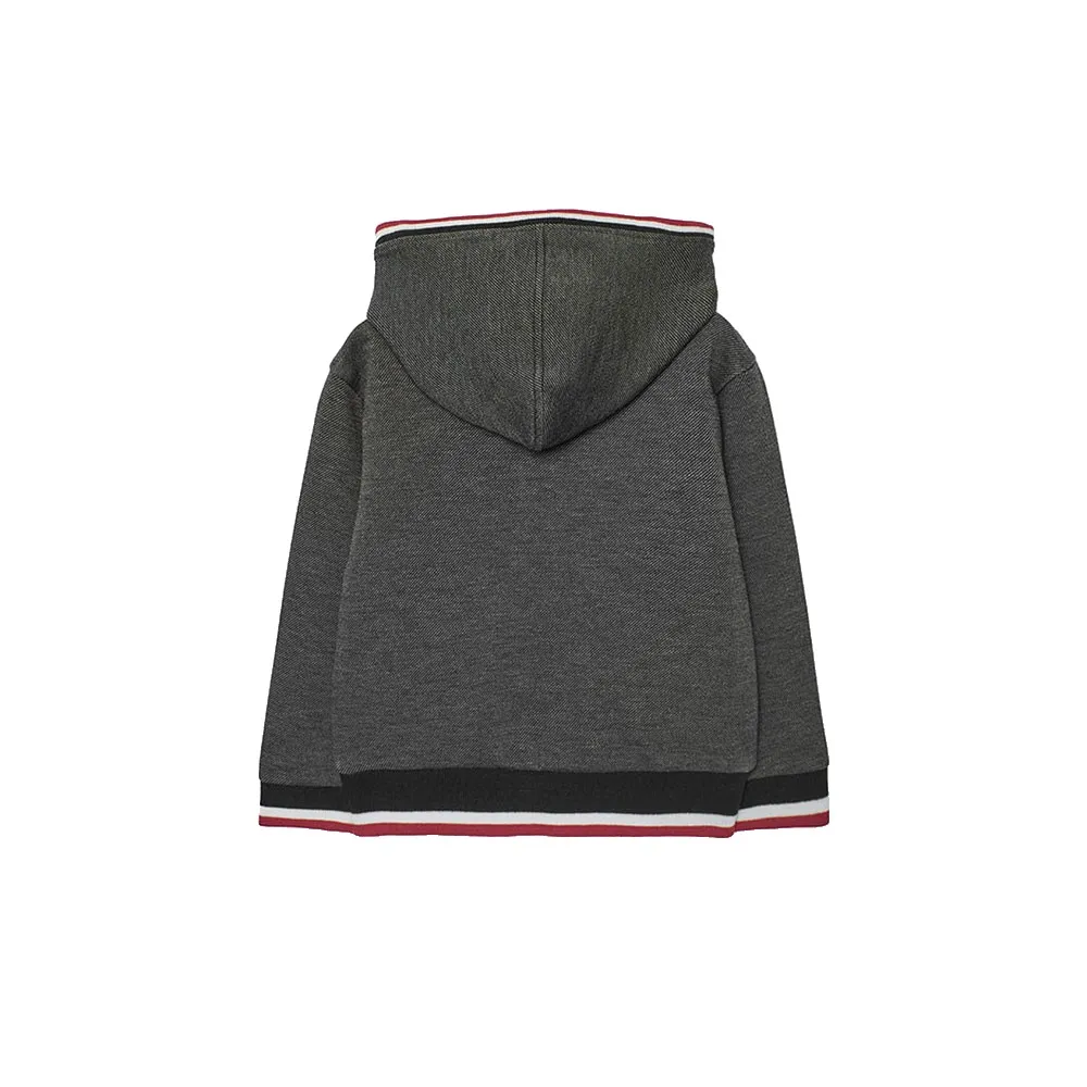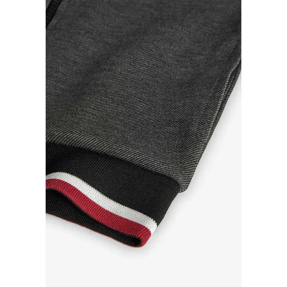 Вязаный жакет для мальчиков черного цвета с красно-белой отделкой, идеально подходящий для прохладного времени года.