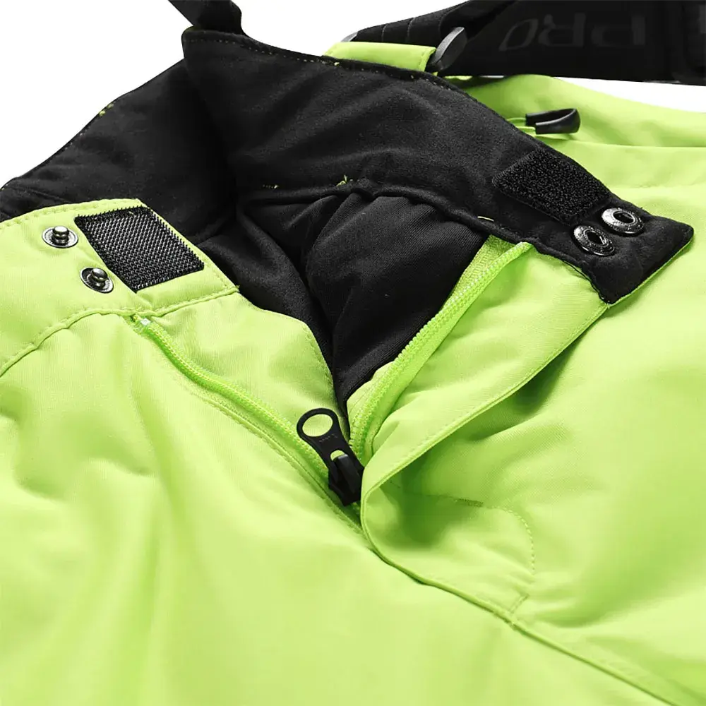 утеплитель средней теплоты, завышенная сзади талия, регулируемый, собран на резинке сзади, проклеенные швы, крепление куртки к брюкам с помощью ремней, съемные регулируемые подтяжки, колени анатомической формы, усиленная нижняя часть штанин со специальным материалом против истирания, отстегивается в нижней части для удобства надевания обуви, несъемная снегозащитная манжета, всего 2 кармана, передний карман на молнии, светоотражающий принт, удлиненные пуллеры для удобства использования.