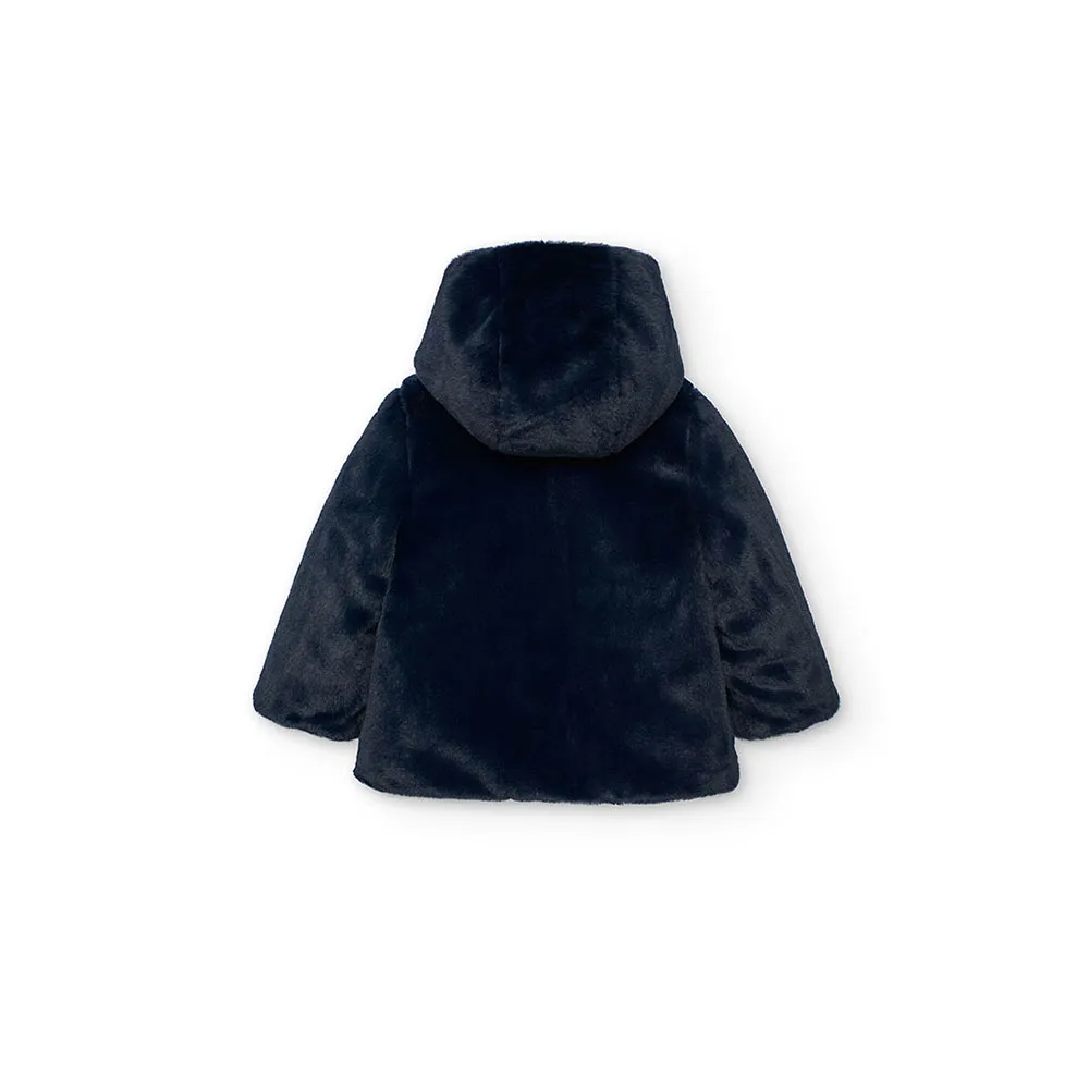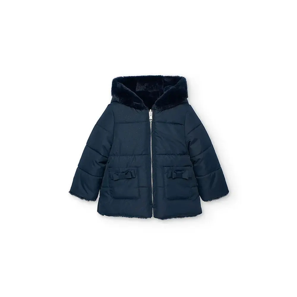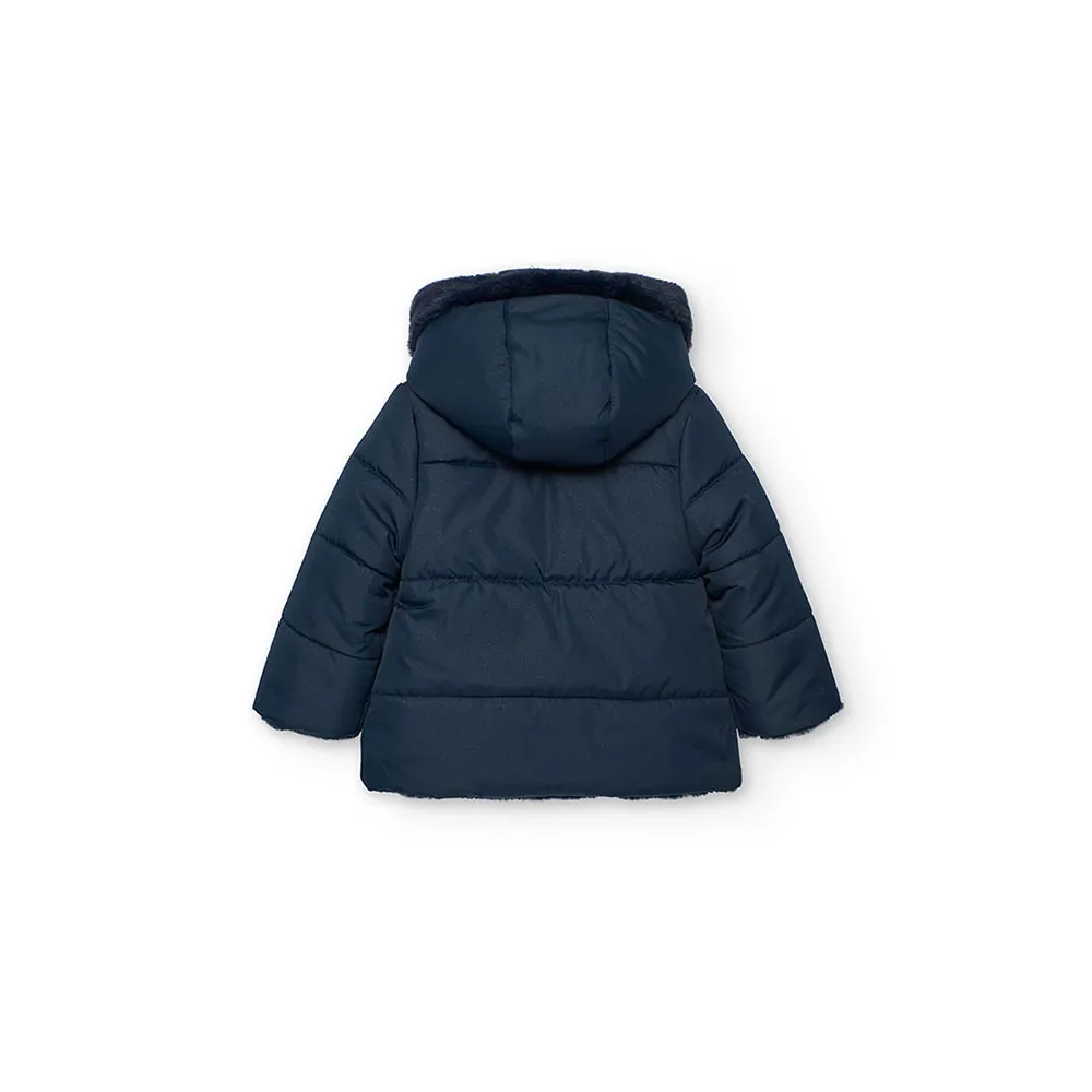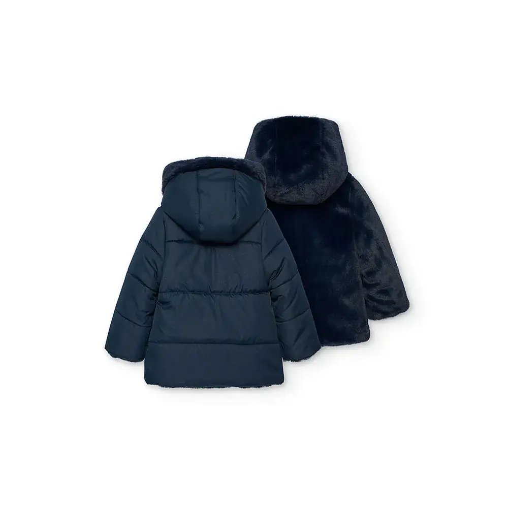 Двусторонняя парка из технической ткани темно-синего цвета для девочек, созданная для того, чтобы встретить зиму с элегантностью и функциональностью.