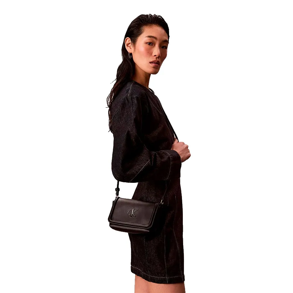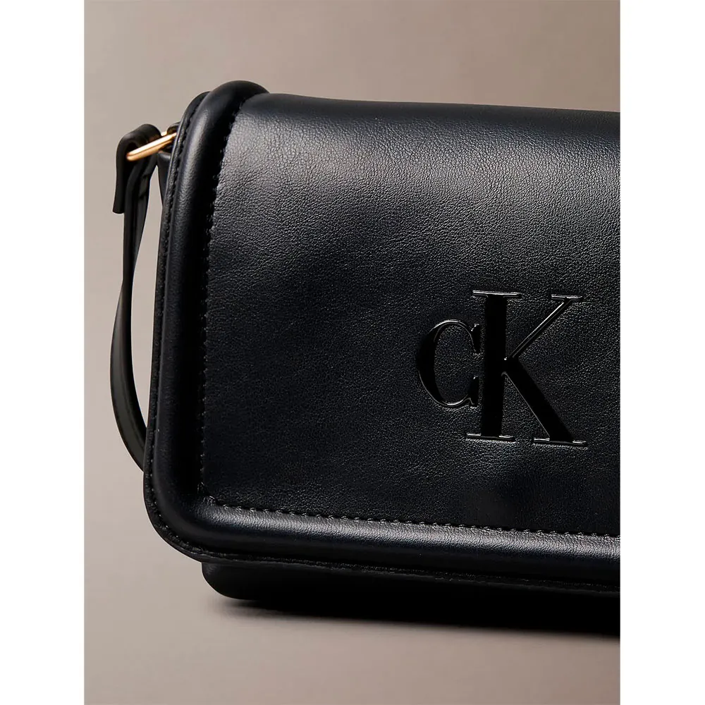 Женская плоская сумка черного цвета с принтом логотипа ck тон в тон.
